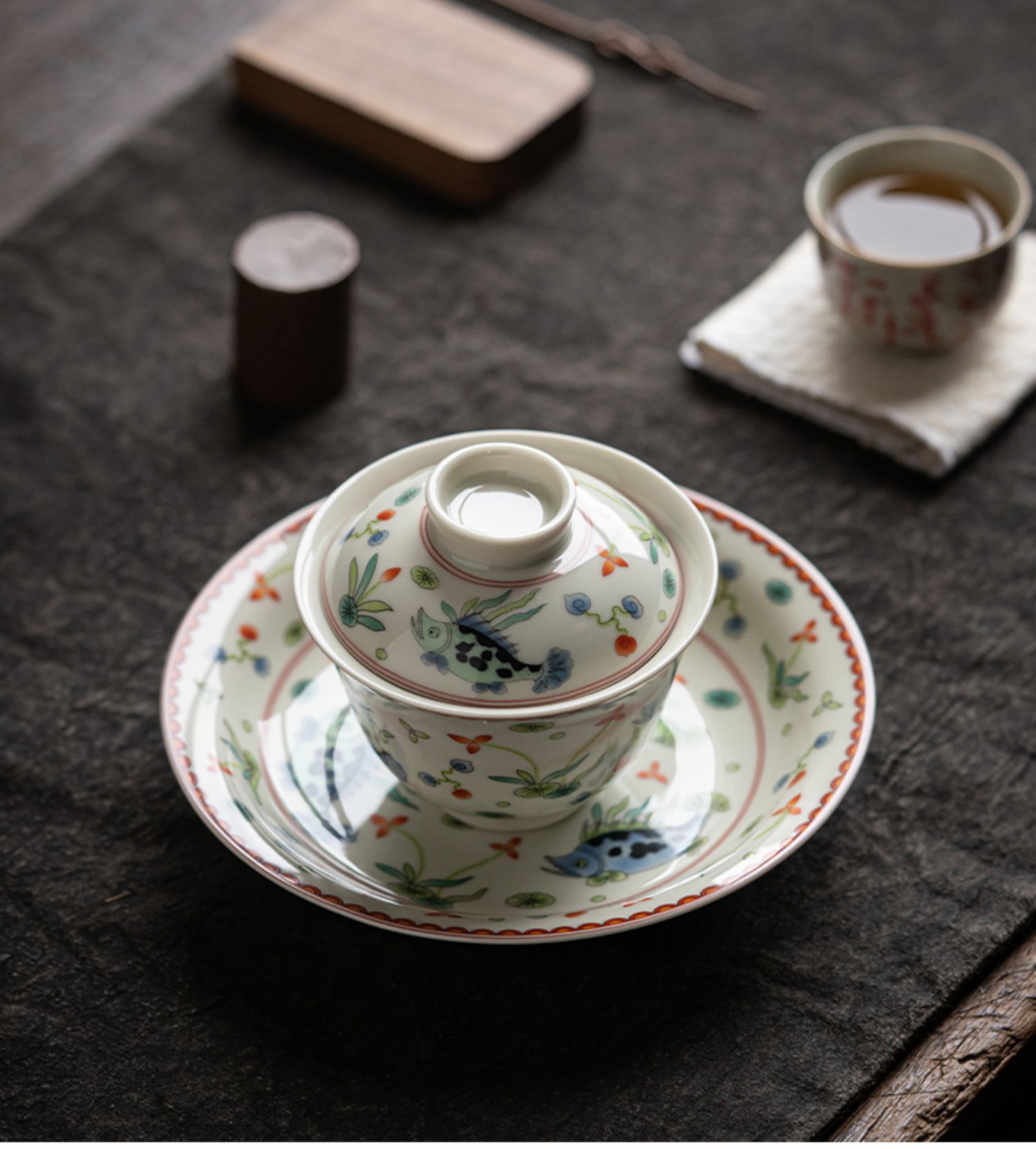 南涵三才盖碗家用陶瓷壶承功夫茶具泡茶碗复古大号茶盏单个茶碗