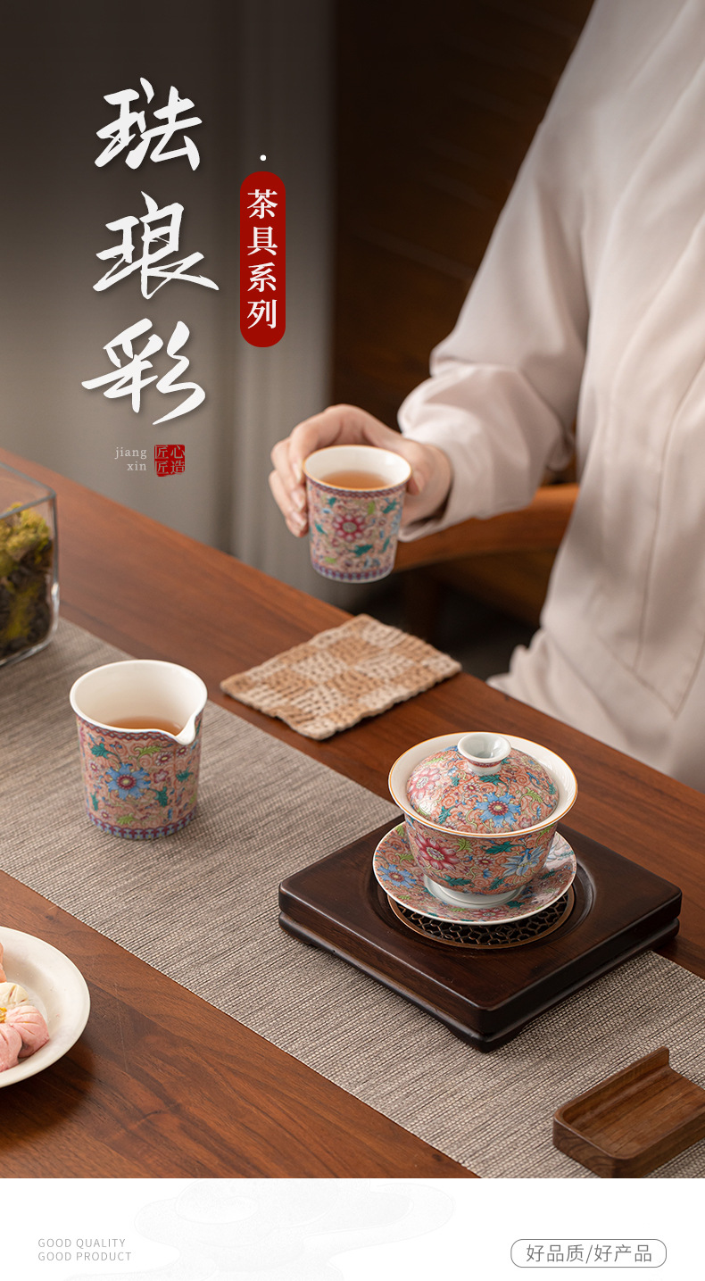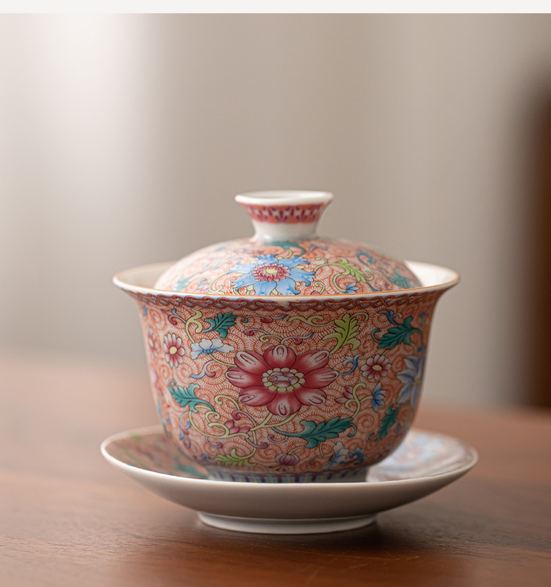Bát có nắp tam tài hoa tráng men, bát pha trà gốm sứ kiểu Trung Quốc, cốc chủ, cốc trà, cốc công bằng, dụng cụ trà Kung Fu gia dụng