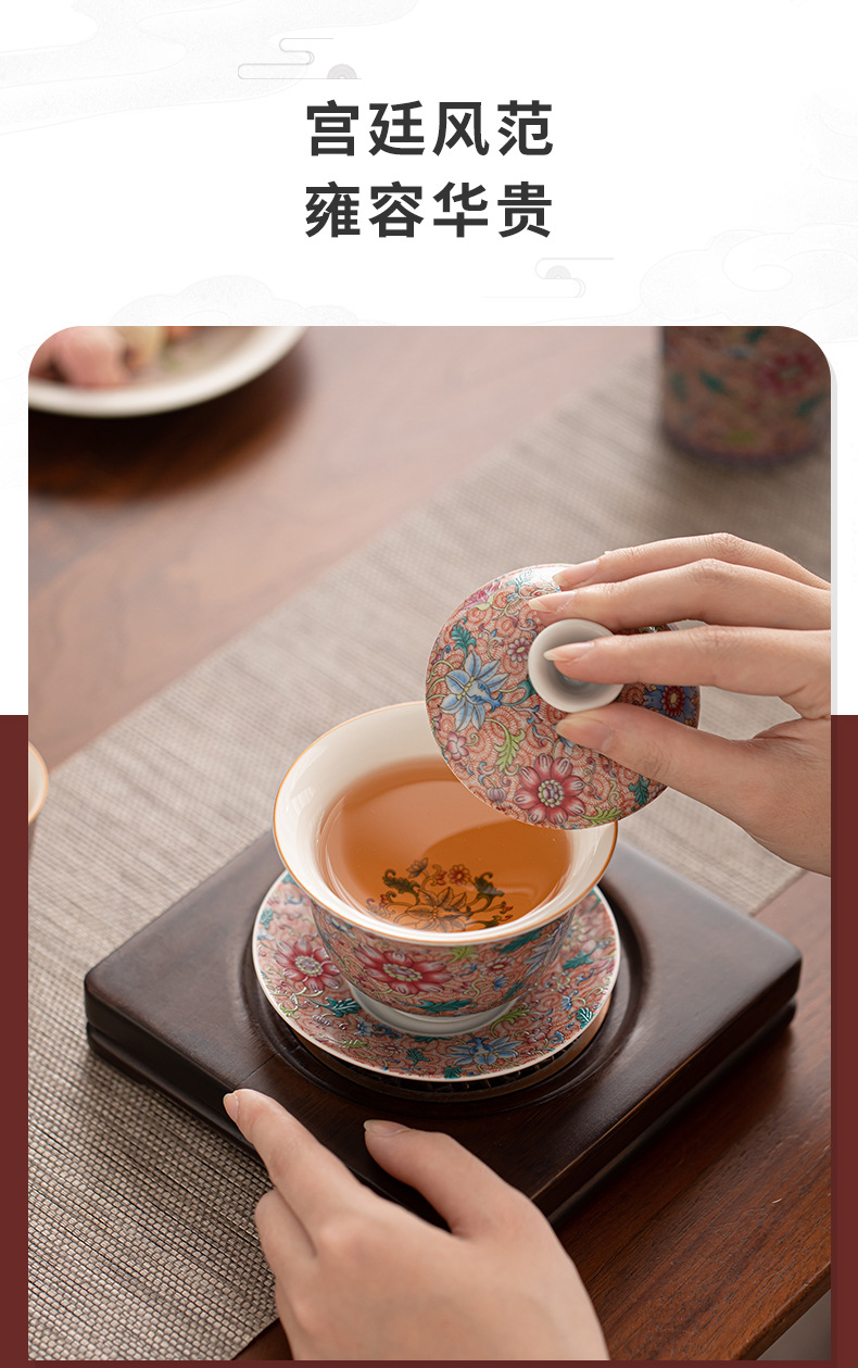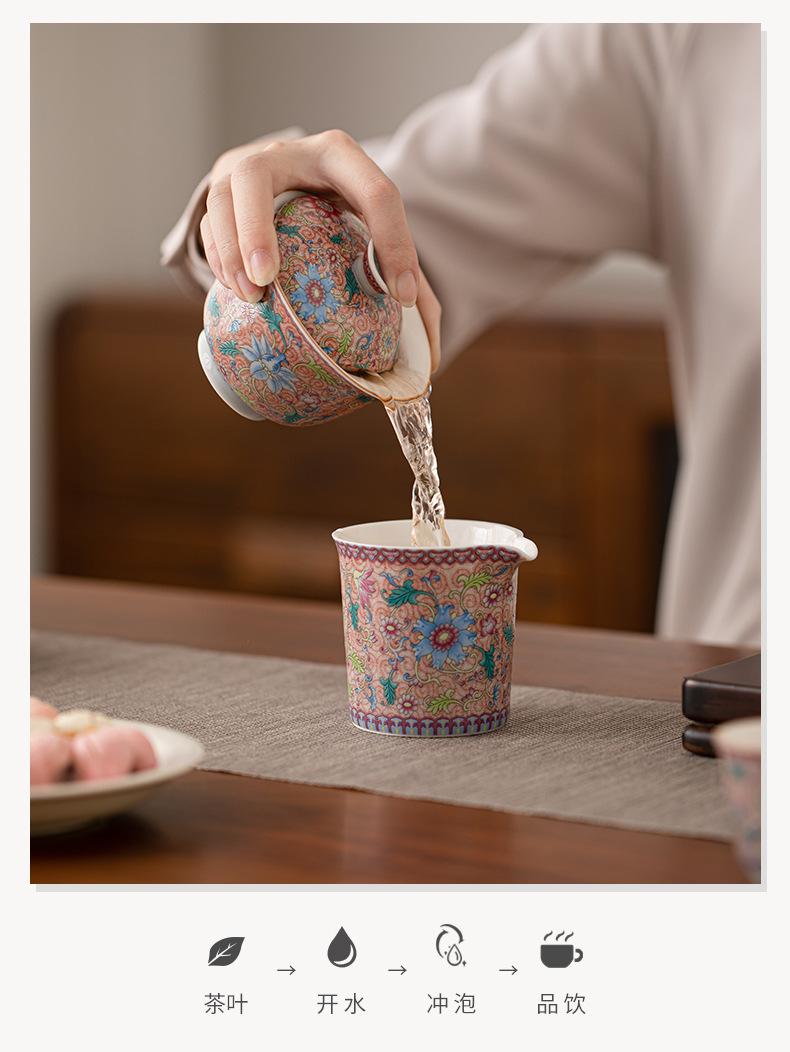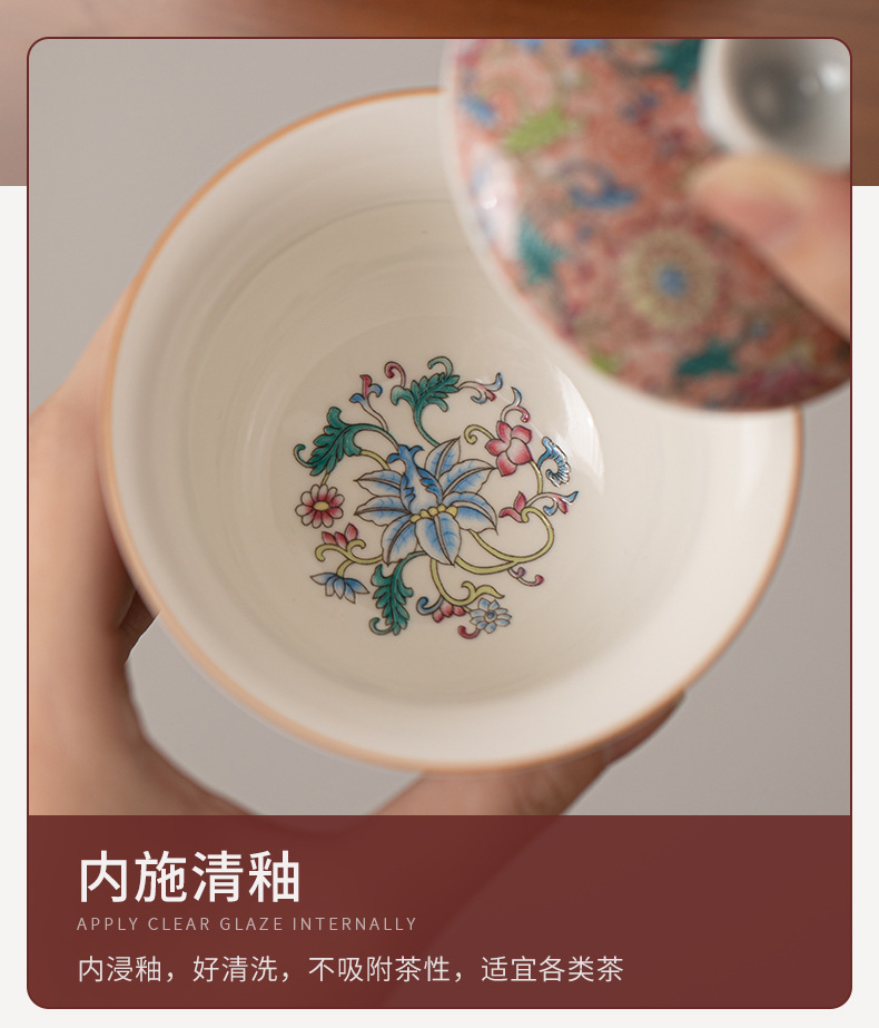 - Bát có nắp tam tài hoa tráng men, bát pha trà gốm sứ kiểu Trung Quốc, cốc chủ, cốc trà, cốc công bằng, dụng cụ trà Kung Fu gia dụng