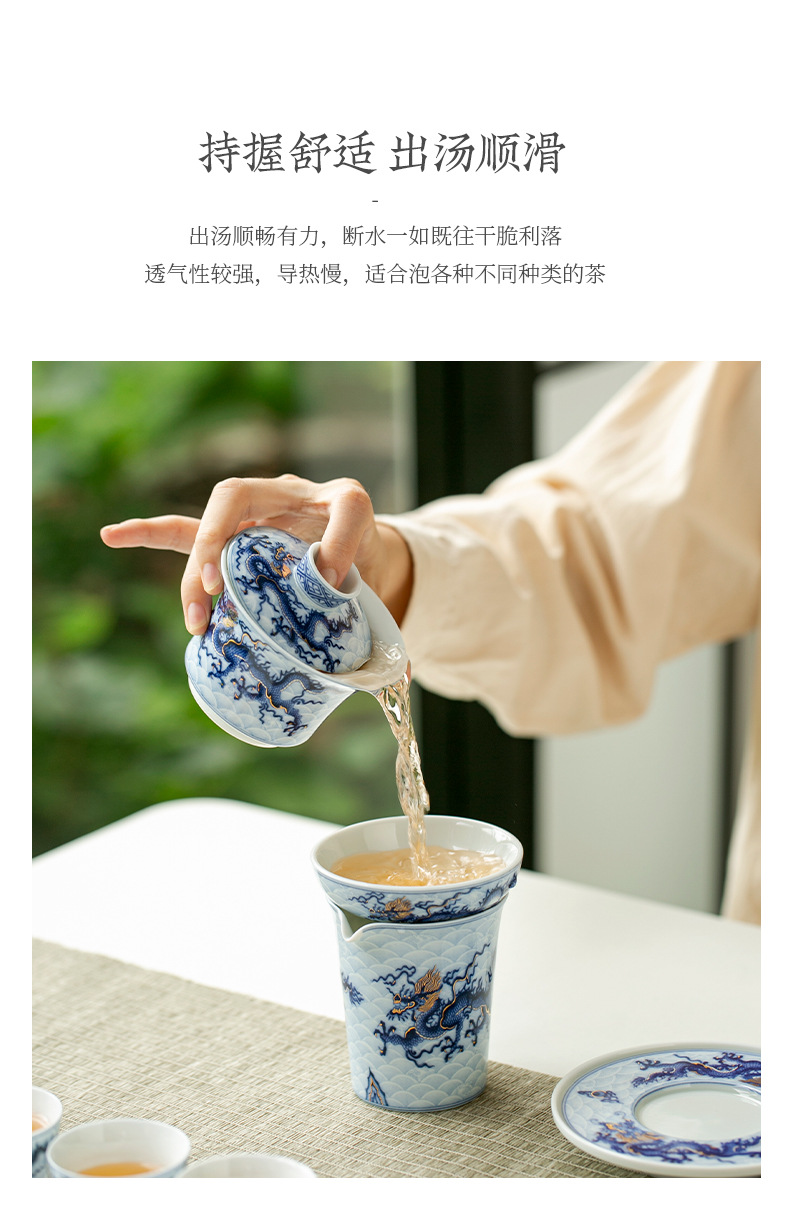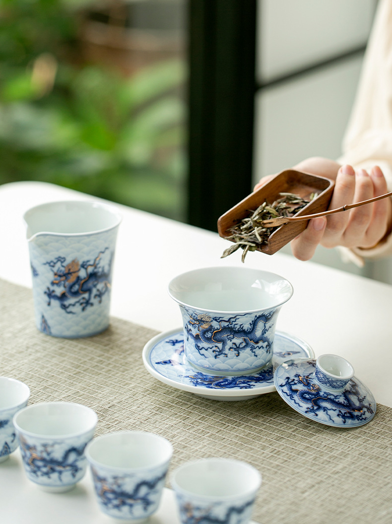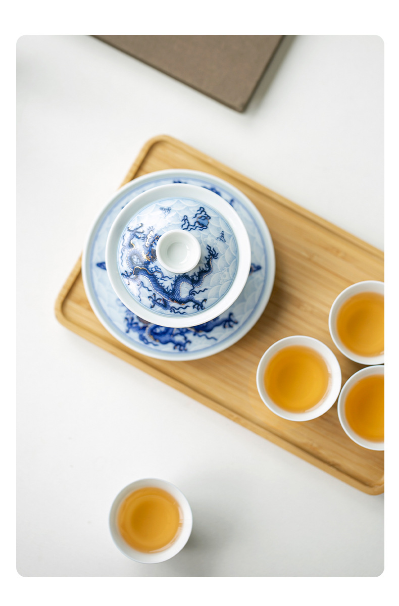 Bát có nắp tam tài hoa văn rồng sai vàng bạc xanh cổ dụng cụ pha trà công phu gốm sứ giá sỉ bộ pha trà cao cấp gia dụng
