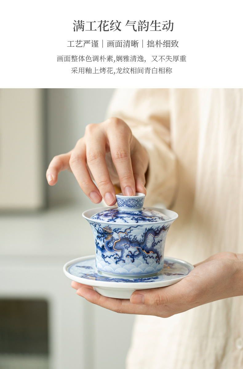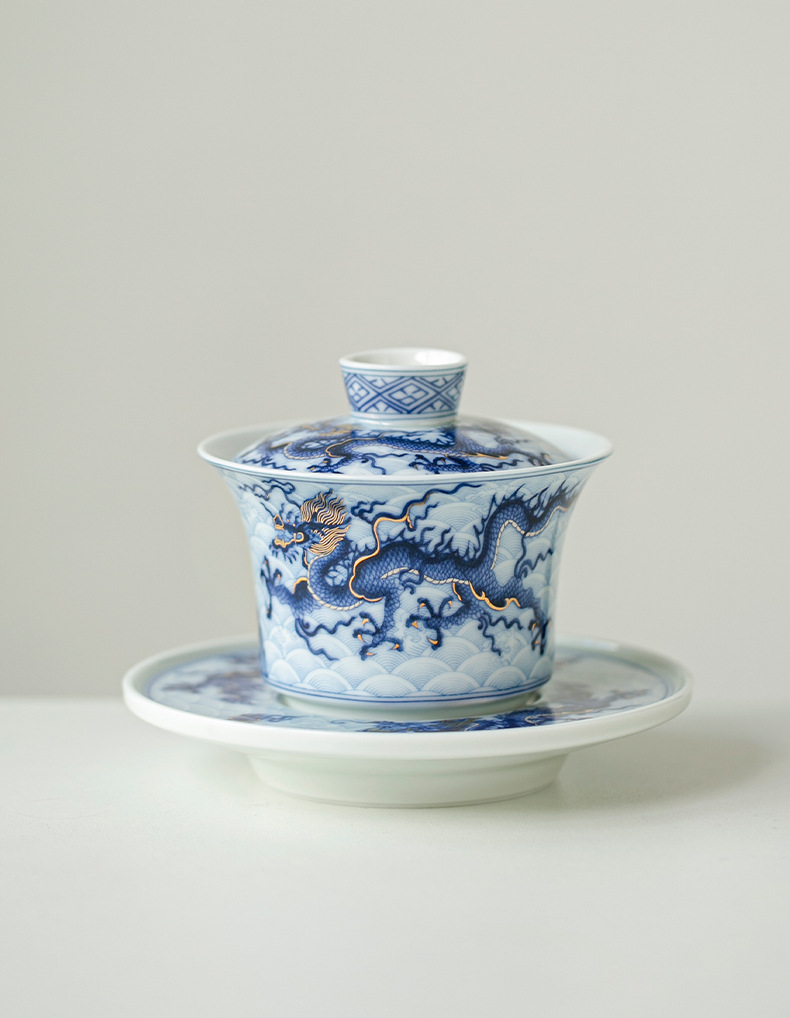 - Bát có nắp tam tài hoa văn rồng sai vàng bạc xanh cổ dụng cụ pha trà công phu gốm sứ giá sỉ bộ pha trà cao cấp gia dụng