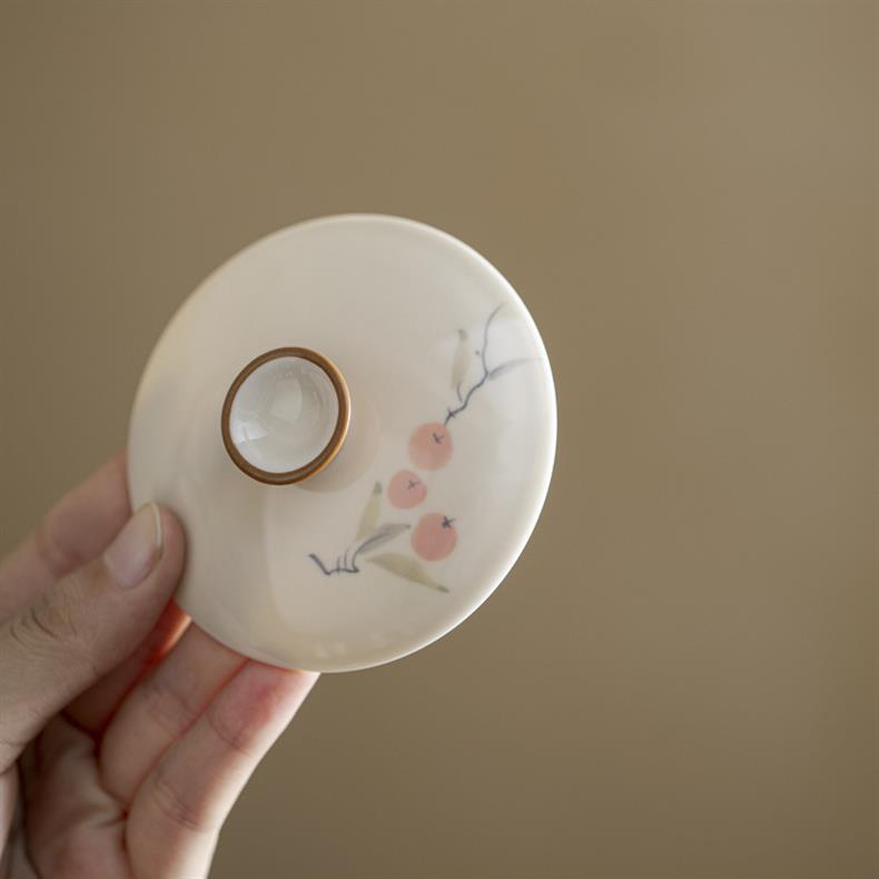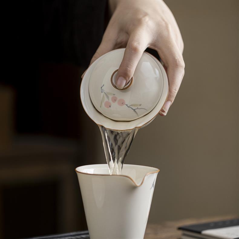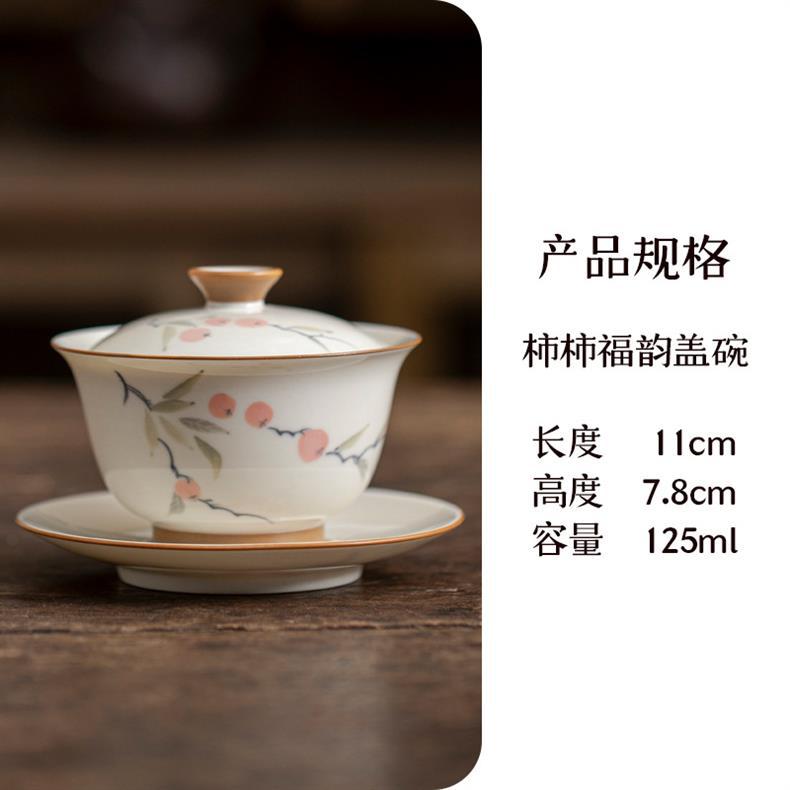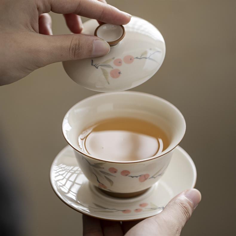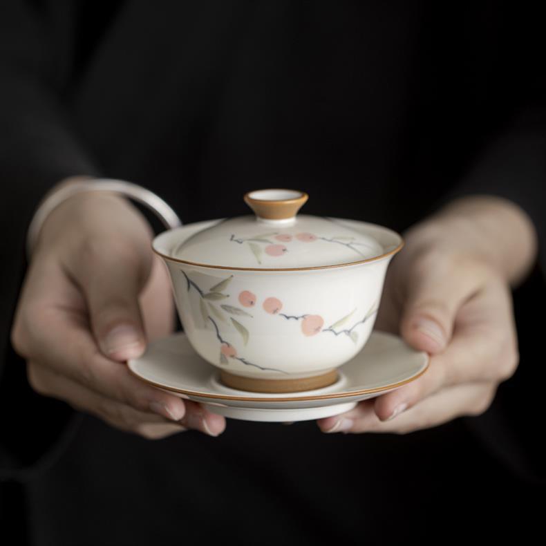 Bát có nắp tam tài vẽ tay Đồ pha trà hồng tráng men màu cổ điển Bộ trà Kung Fu cao cấp chống bỏng gia dụng Bát trà gốm sứ