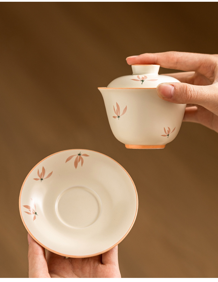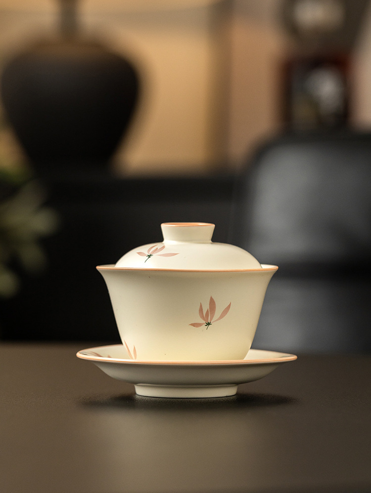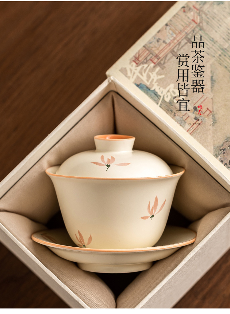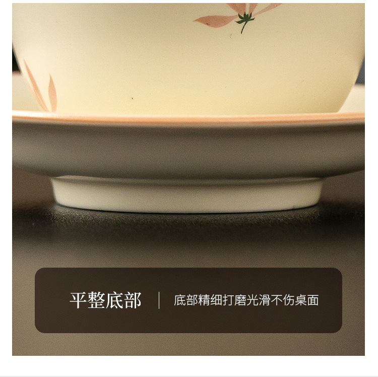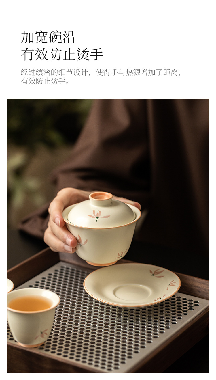 Bát có nắp tinh xảo hoa lan tráng men màu vàng gạo bát trà tam tài cao cấp bộ trà pha trà gia dụng gốm sứ kiểu Trung Quốc dung tích lớn