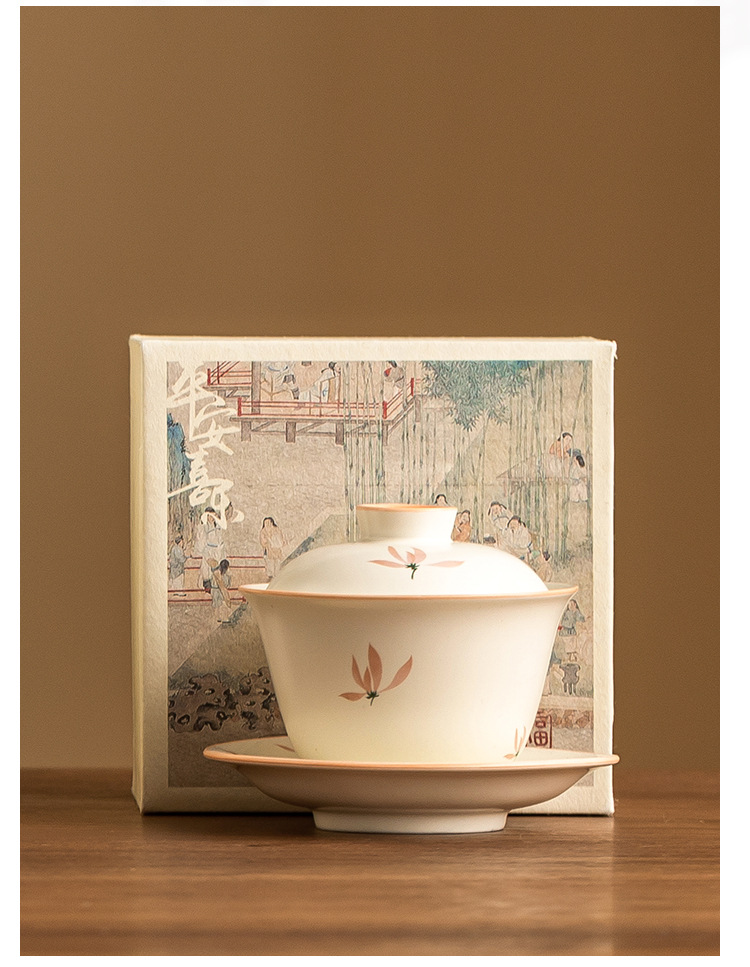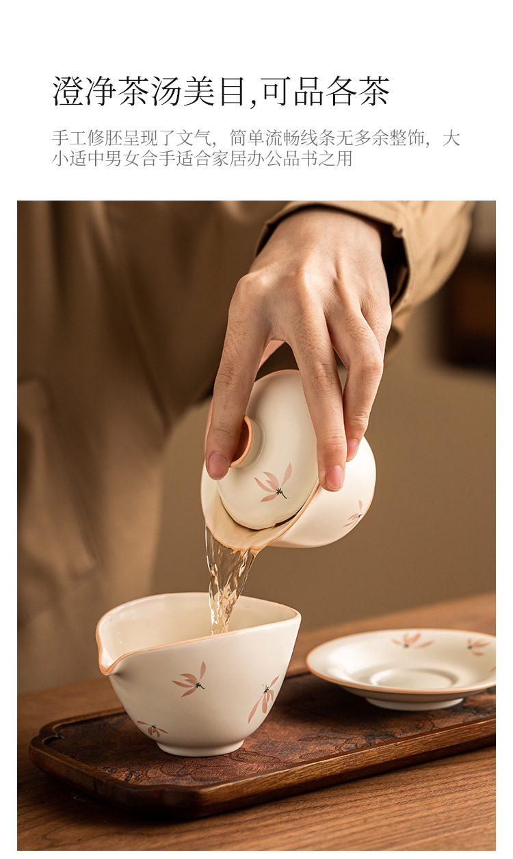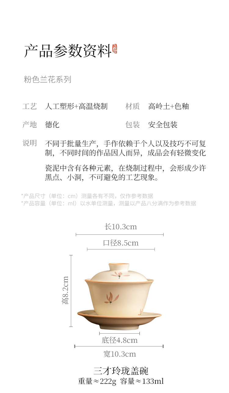 - Bát có nắp tinh xảo hoa lan tráng men màu vàng gạo bát trà tam tài cao cấp bộ trà pha trà gia dụng gốm sứ kiểu Trung Quốc dung tích lớn