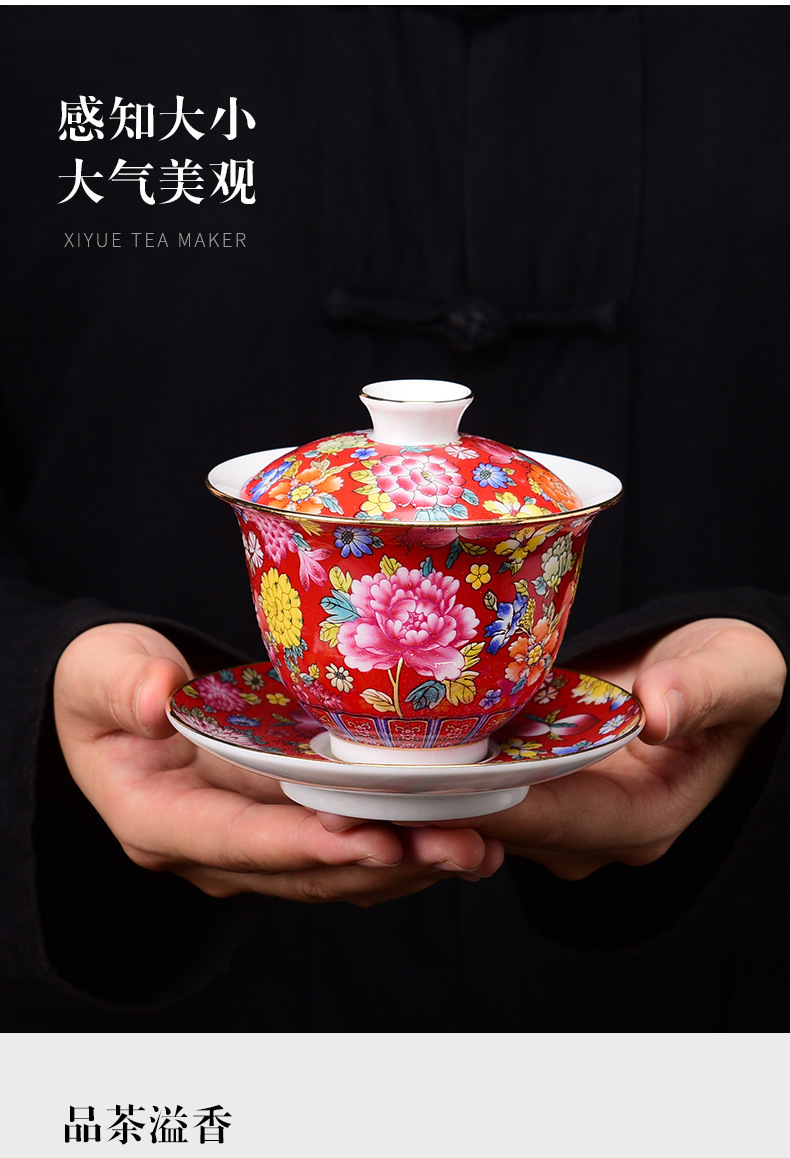 - Bát có nắp tráng men một cốc trà gốm sứ Jingdezhen bộ trà Kung Fu bộ trà tam tài bộ trà bán buôn gia dụng