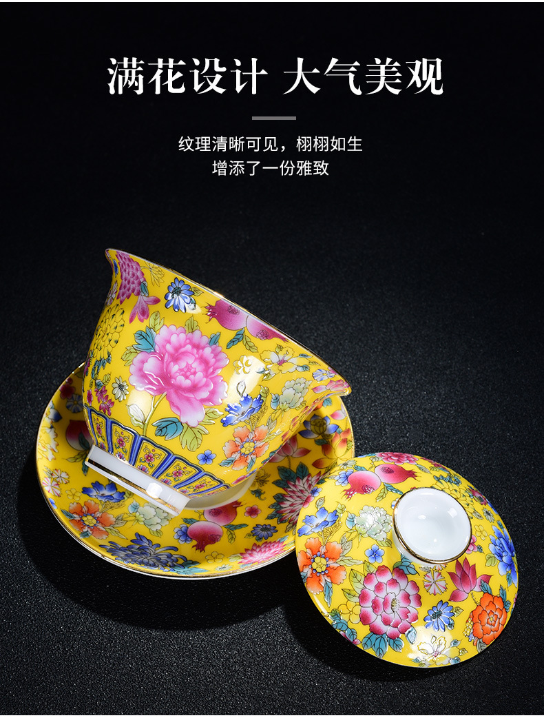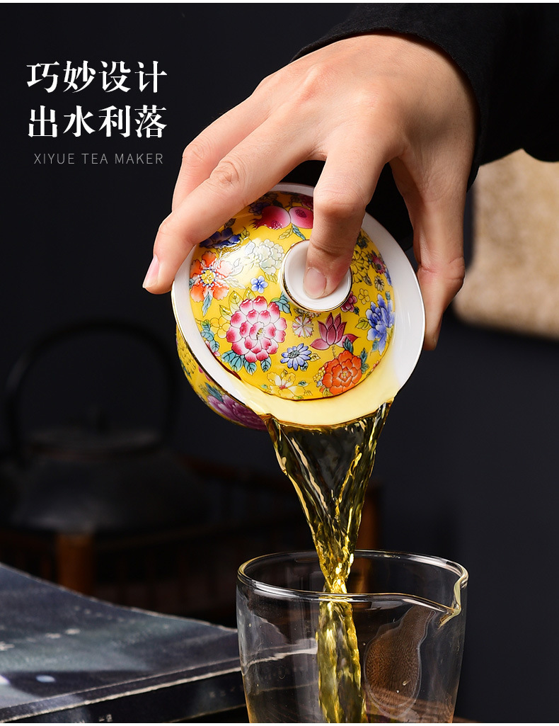Bát có nắp tráng men một cốc trà gốm sứ Jingdezhen bộ trà Kung Fu bộ trà tam tài bộ trà bán buôn gia dụng