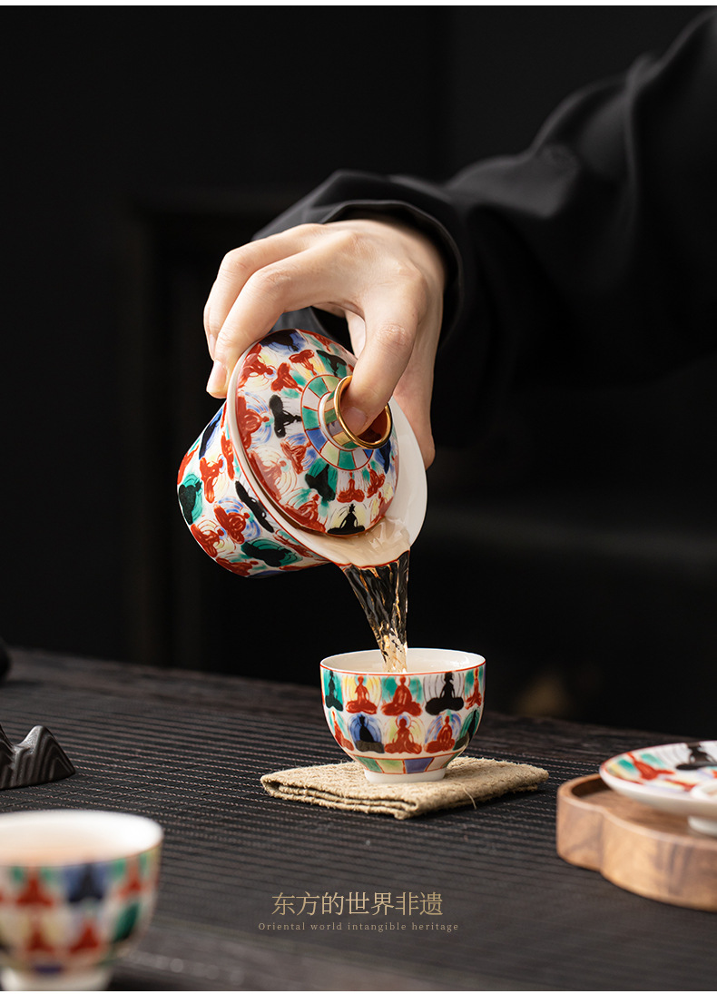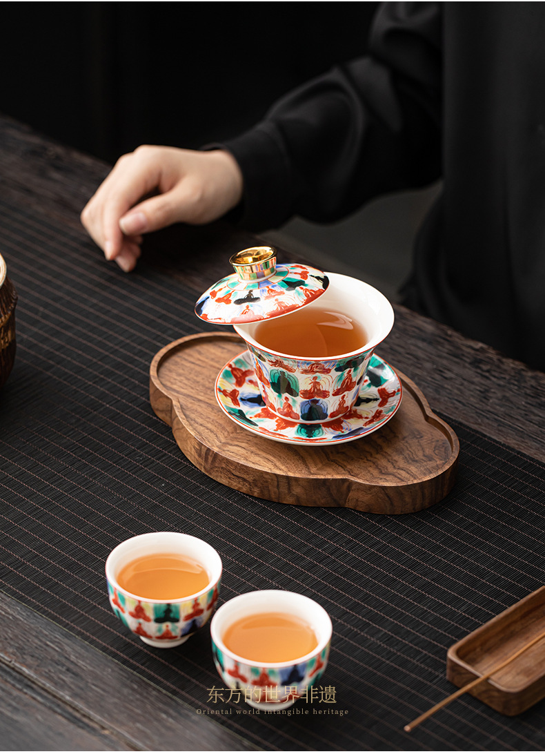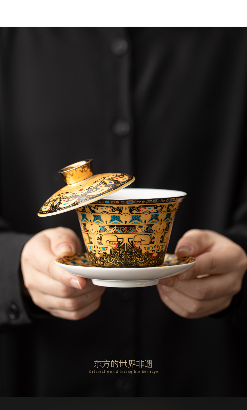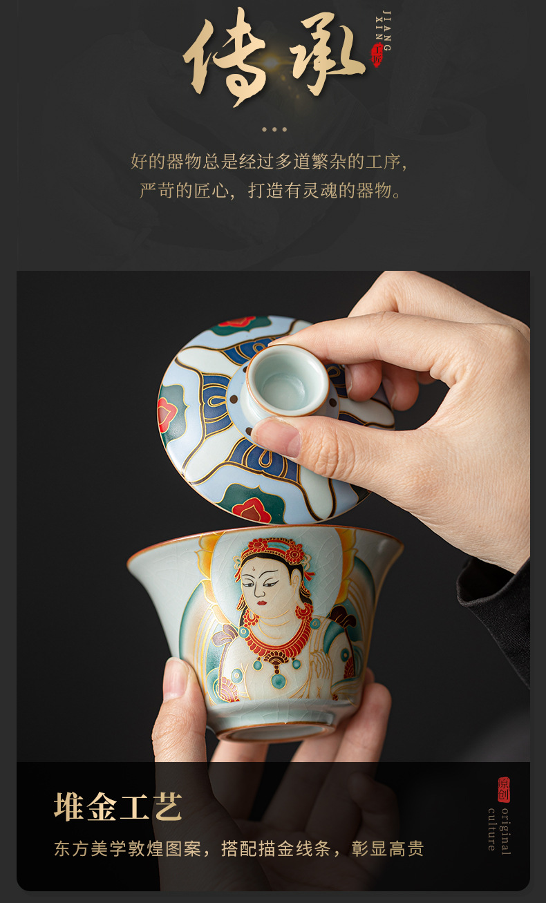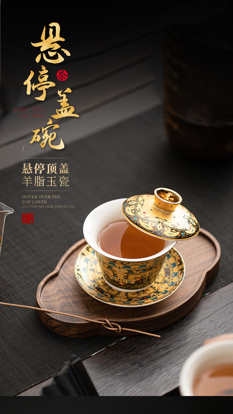 - Bát có nắp treo có thể xoay Thangka Bát pha trà tam tài gia dụng cao cấp