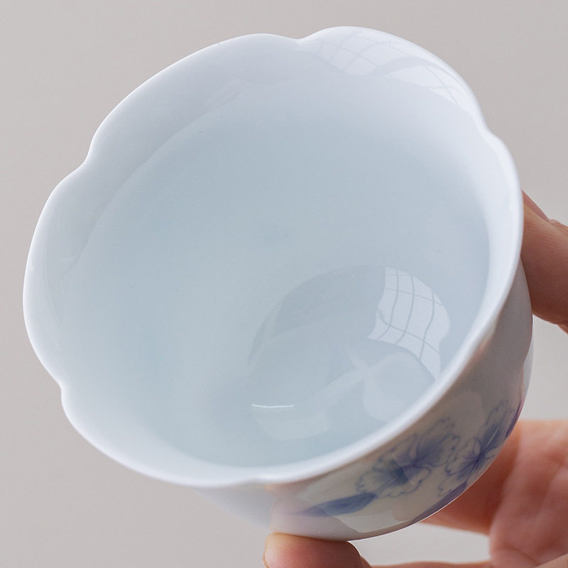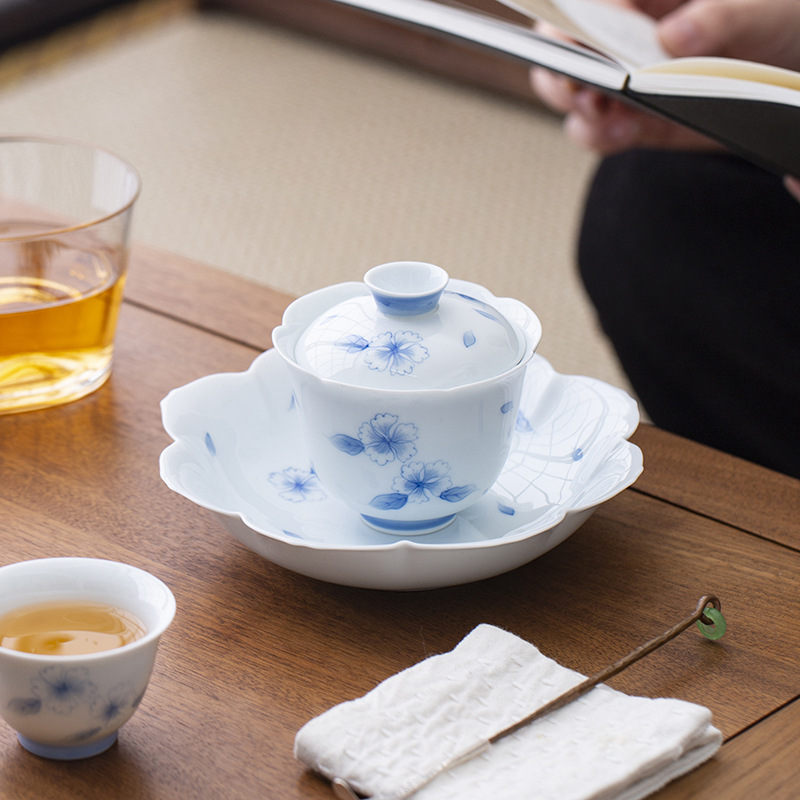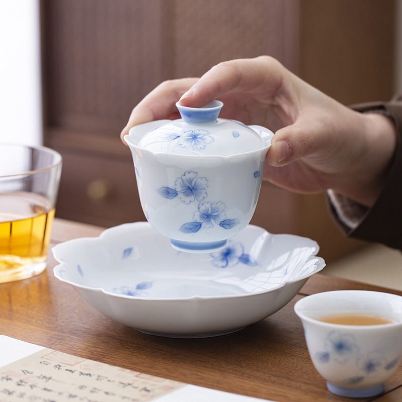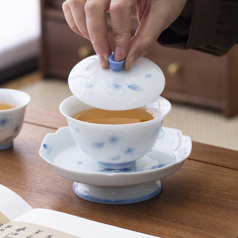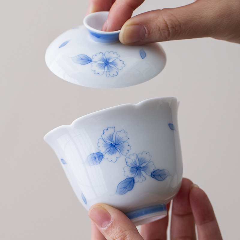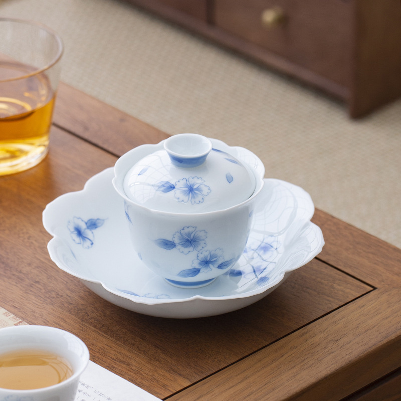 Bát có nắp vẽ tay tráng men, bát trà gốm thủ công, cốc trà, bộ trà Kung Fu sứ trắng, bát pha trà chuyên dụng cho nữ