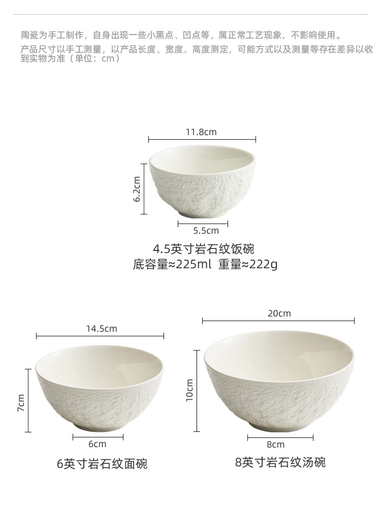 - Bát cơm hoa văn đá bát canh gốm sứ gia dụng bát mì tôm càng cao cấp cá luộc cá bắp cải chua Bát salad