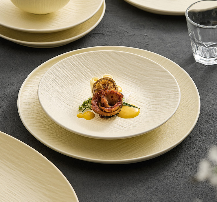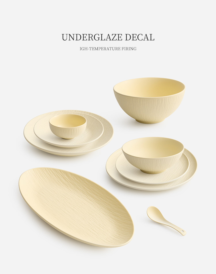 - Bát đĩa cát lún màu be, bát đĩa, bát đĩa gia dụng, bát cơm gốm sứ kem, bát canh, bộ đồ ăn