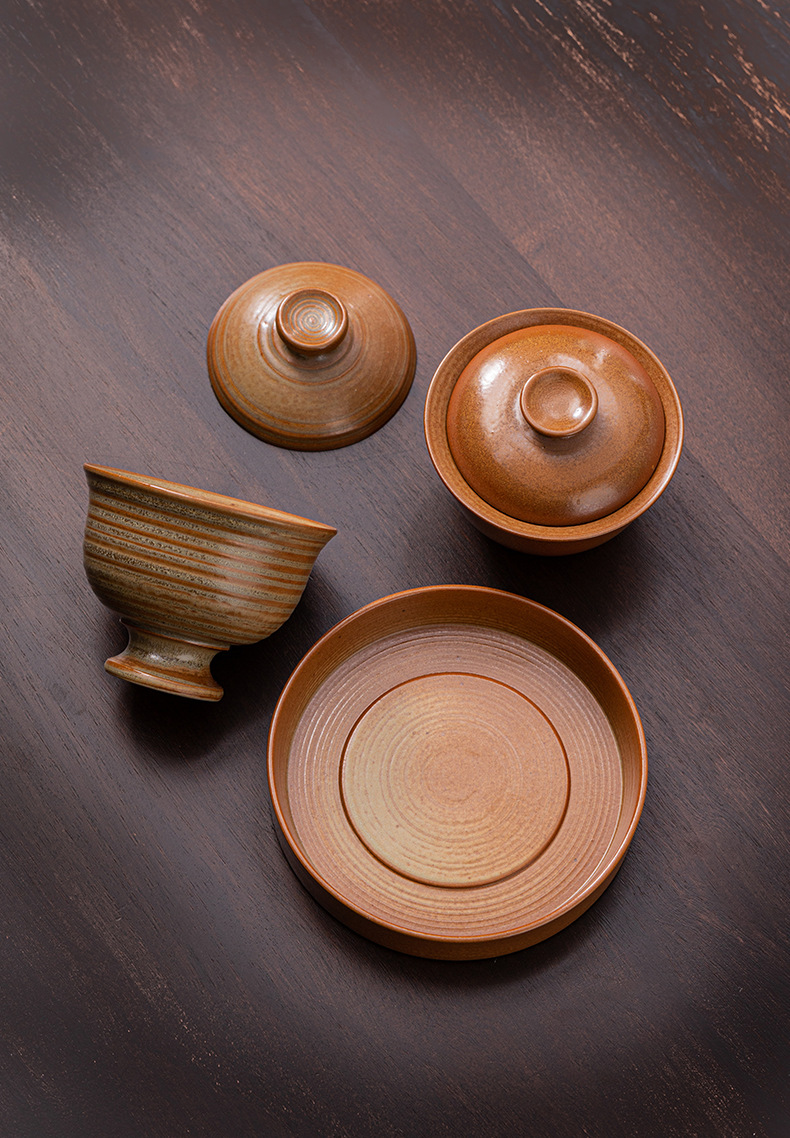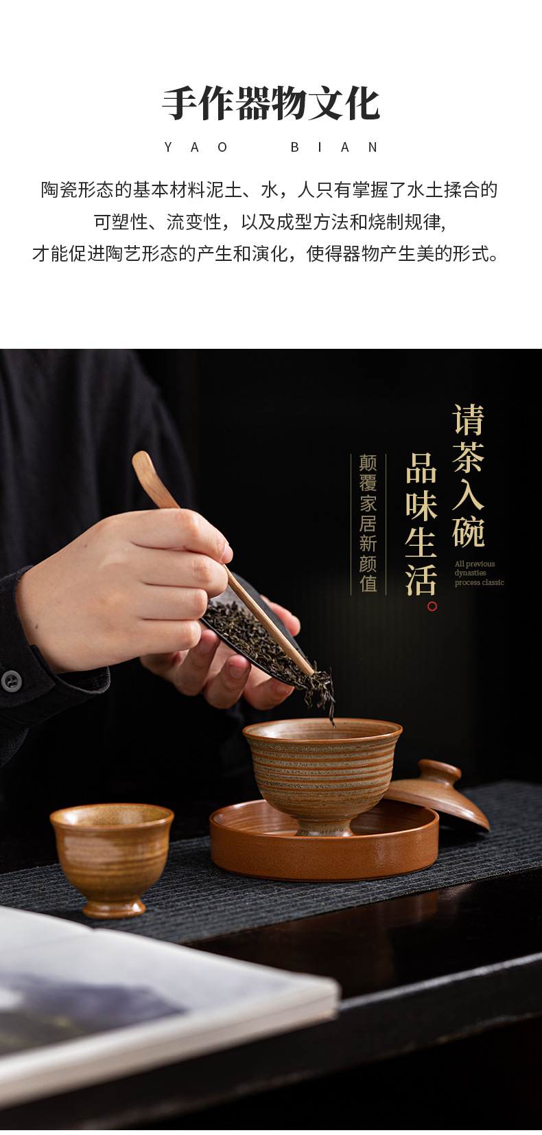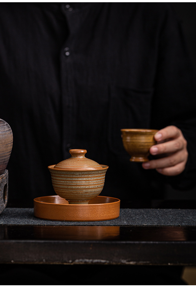 Bát đựng trà bằng đất đá cũ tráng men hai nắp phong cách Trung Quốc cổ điển gốm thô cũ bằng đất sét đá cũ hộp quà bộ trà kungfu gia dụng