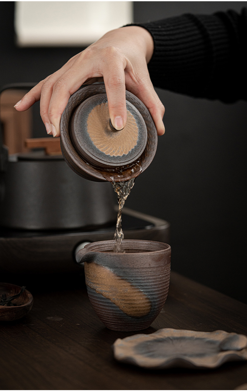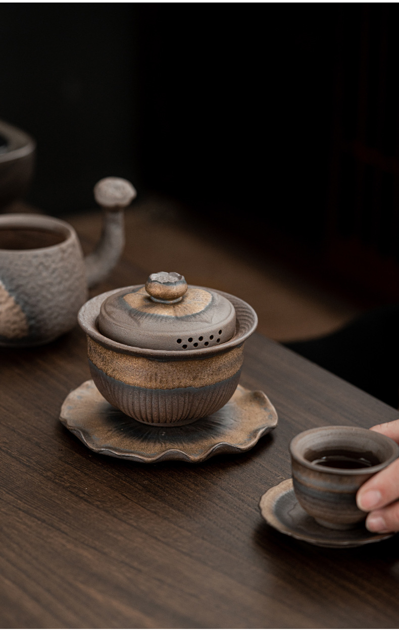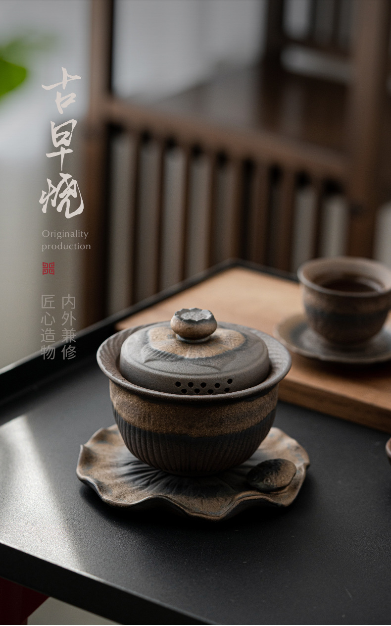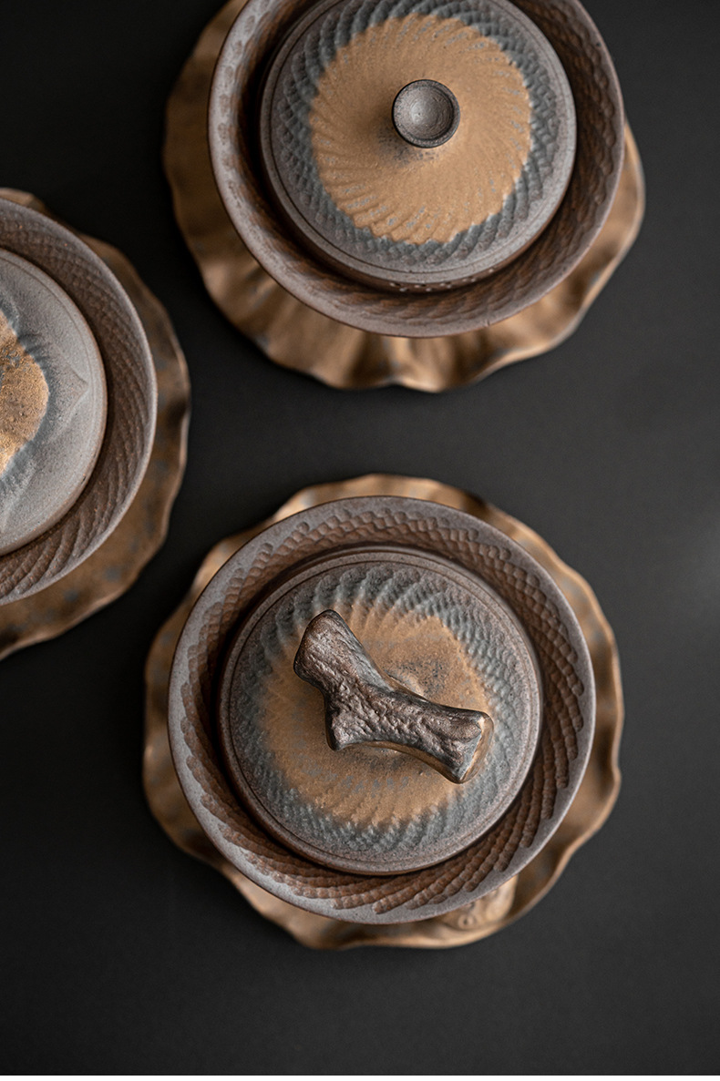- Bát đựng trà Kung Fu không nóng kiểu Nhật, bát pha trà cầm tay, bộ trà mạ vàng bằng gốm thô, nhà sản xuất bán buôn dụng cụ pha trà