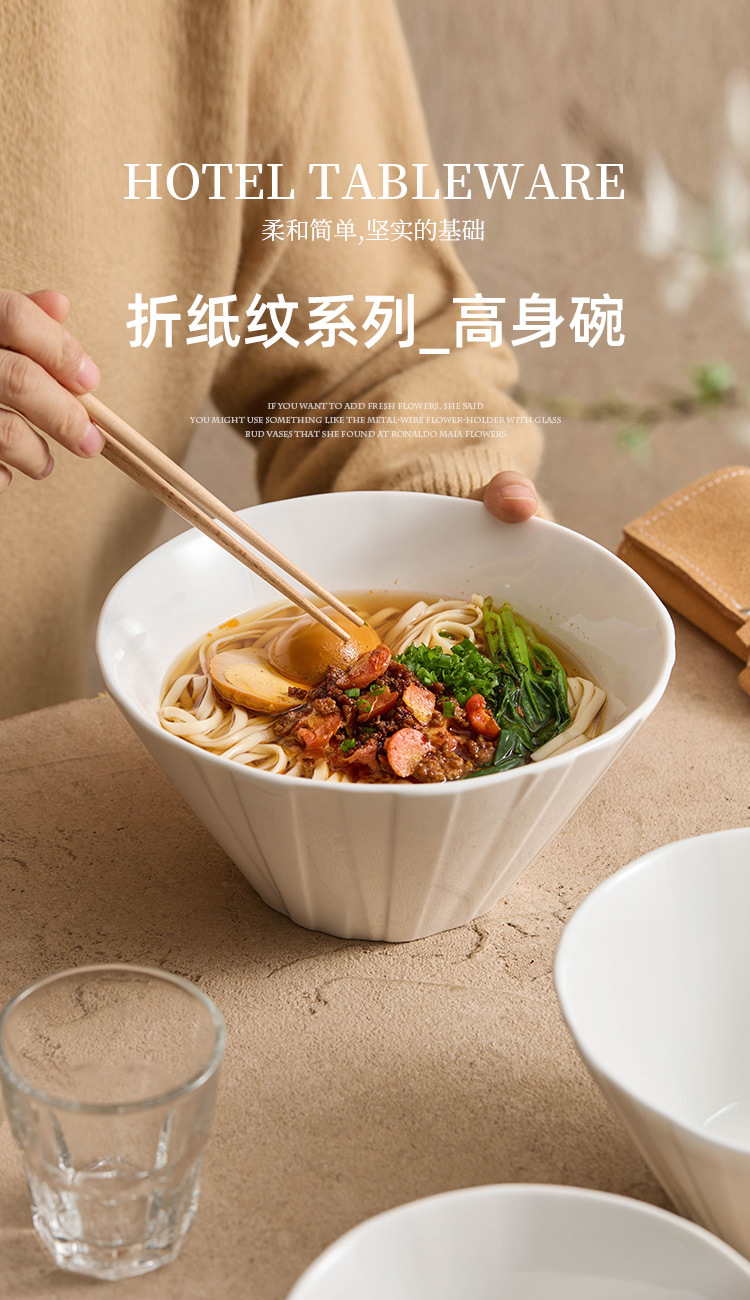 - Bát gốm họa tiết Origami Bát mì gia dụng Bát súp Cảm giác cao cấp Bộ đồ ăn khách sạn Bát cỡ lớn Bát doga Bát sâu Bát mì ramen