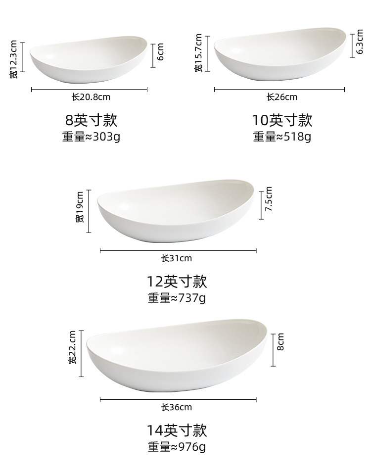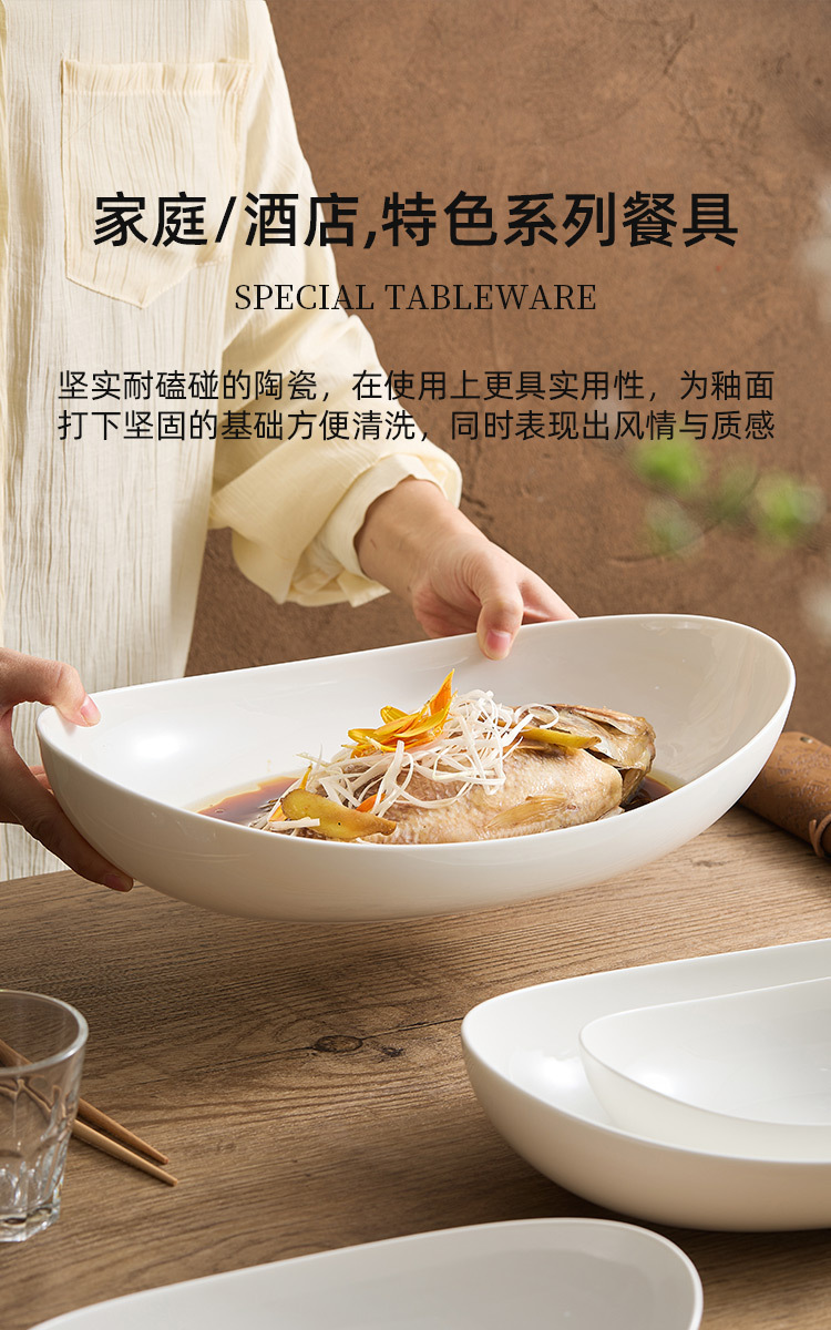 - Bát hình bầu dục sứ trắng, bát salad trái cây hình đặc biệt, bộ đồ ăn khách sạn, bộ đồ ăn nhà hàng, bát giác cao cấp, đĩa gia dụng, đĩa cá