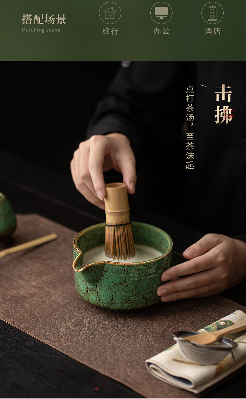 - Bát matcha kiểu Nhật có giá đỡ máy đánh trà, phụ kiện bộ ấm trà bằng gốm nung màu chảy, bát trà kiểu nhà Tống có đế đánh trà.