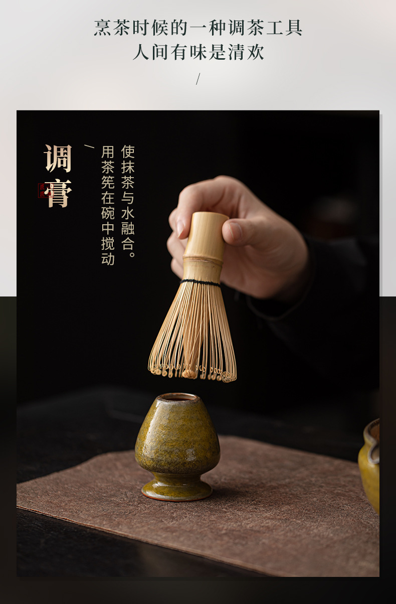- Bát matcha kiểu Yao có giá đỡ chổi đánh trà, dụng cụ pha trà thời nhà Tống, bát trà, cọ trà.