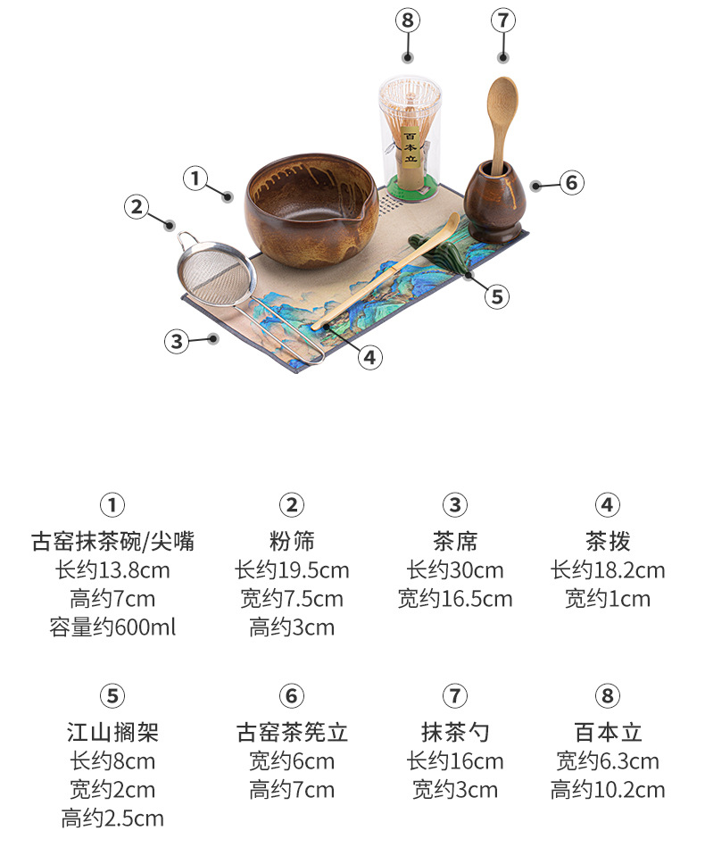 Bát matcha lò cổ, bình trà, bộ đứng, phụ kiện trà gốm sứ, bình khuấy, bình trà, bát trà có ren, bàn chải trà, bình trà