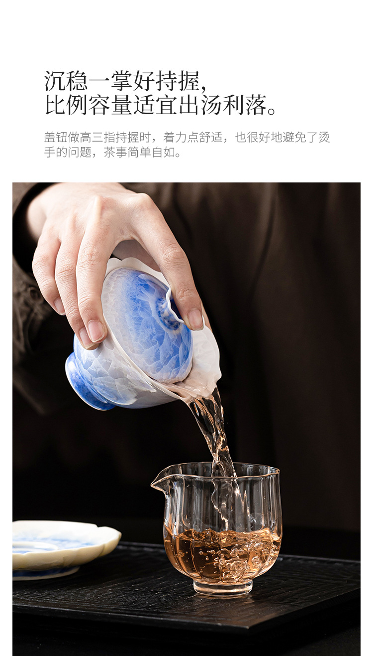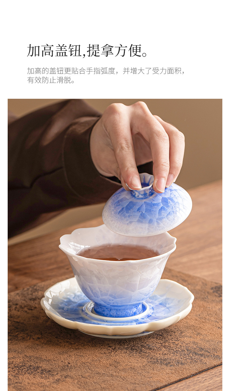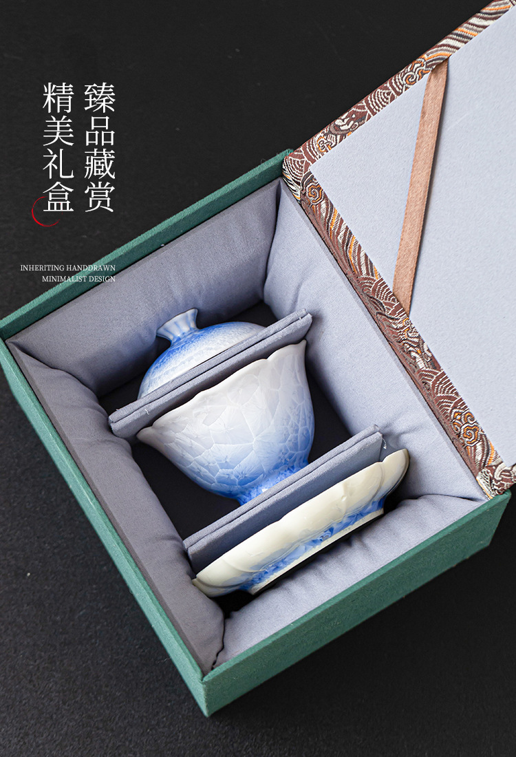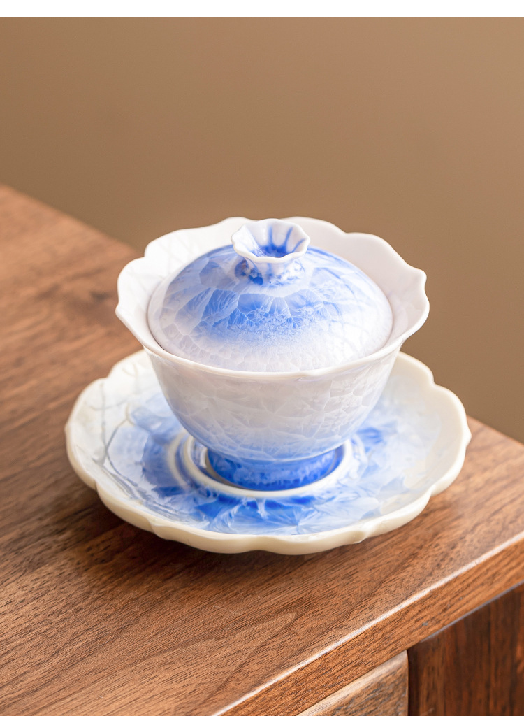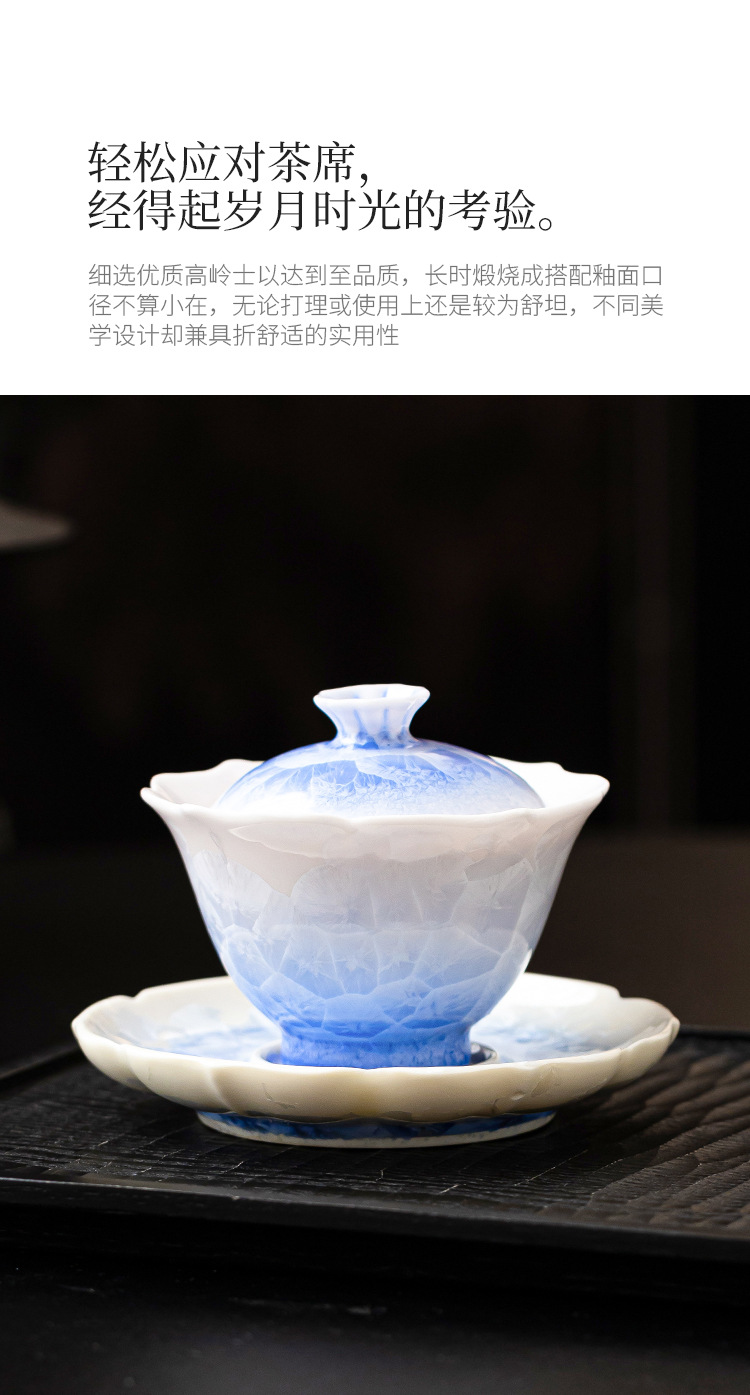 Bát nắp miệng hướng dương xanh tráng men pha lê cốc trà bát pha trà gốm sứ tam tài cao cấp có nắp bộ trà kungfu chống bỏng đơn