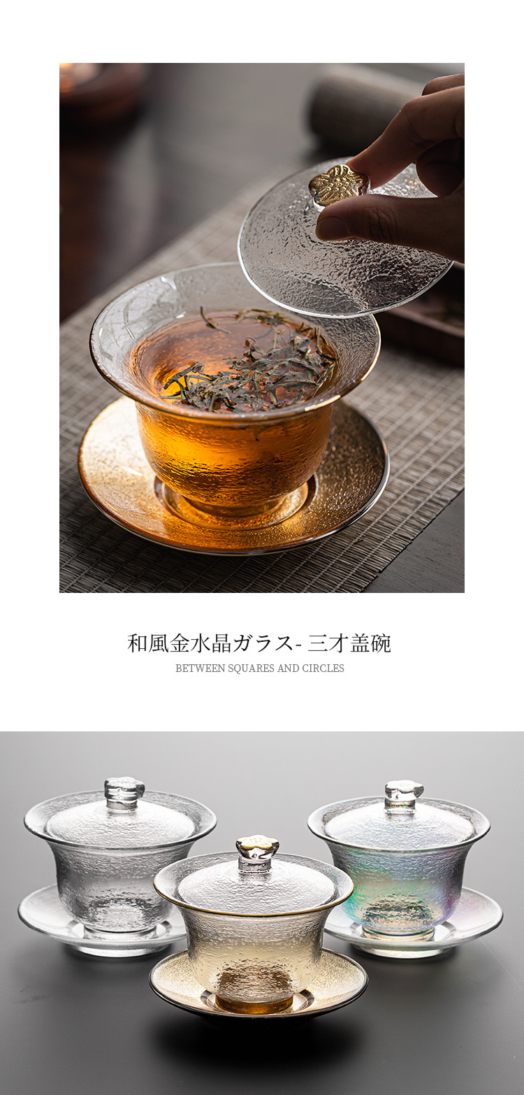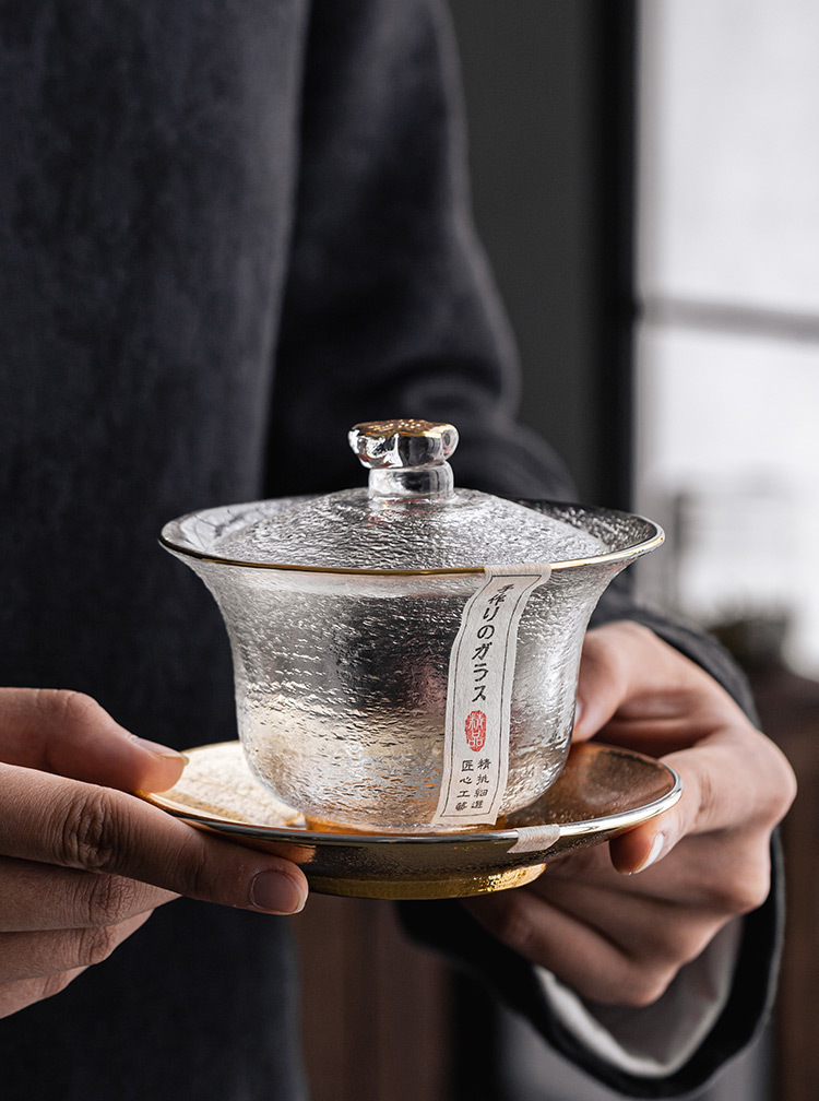 - Bát nắp tam tài thủy tinh pha lê, bộ pha trà vân búa vàng, tách trà, phụ kiện Bộ trà Kungfu gia dụng, dày dặn không nóng tay