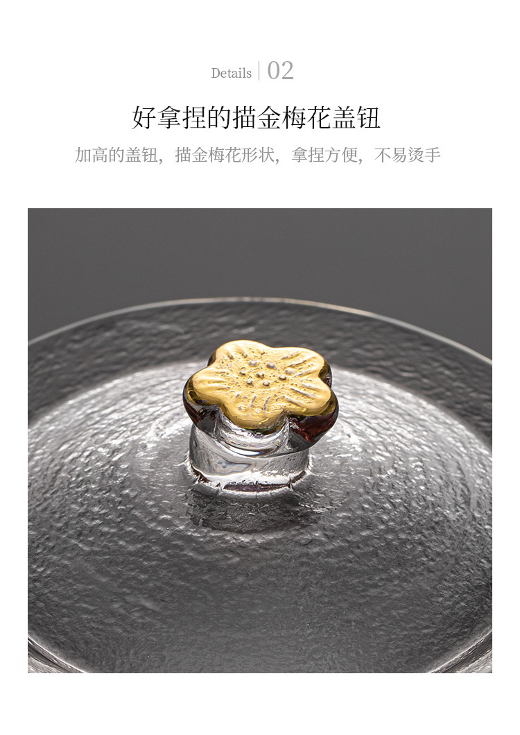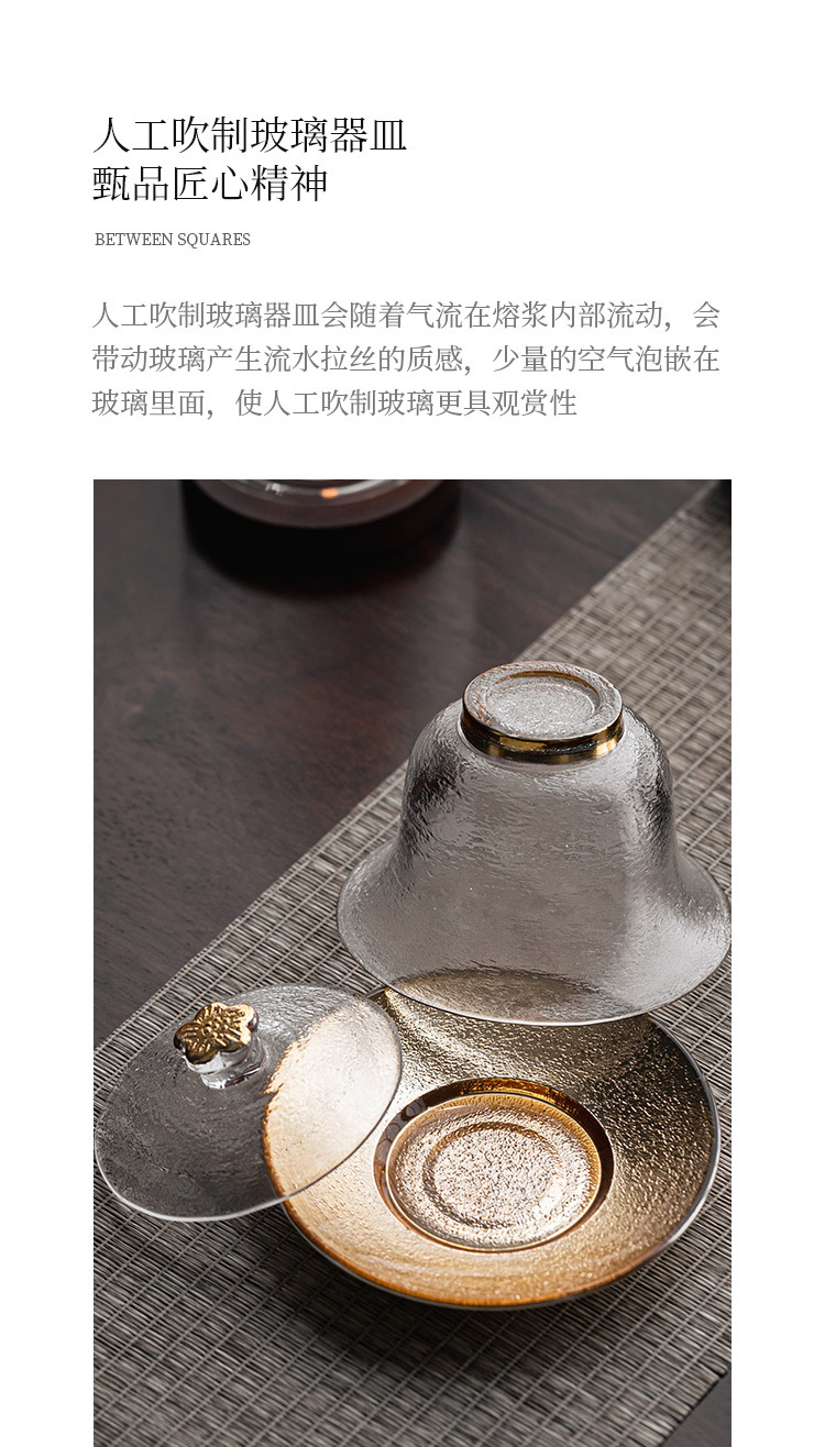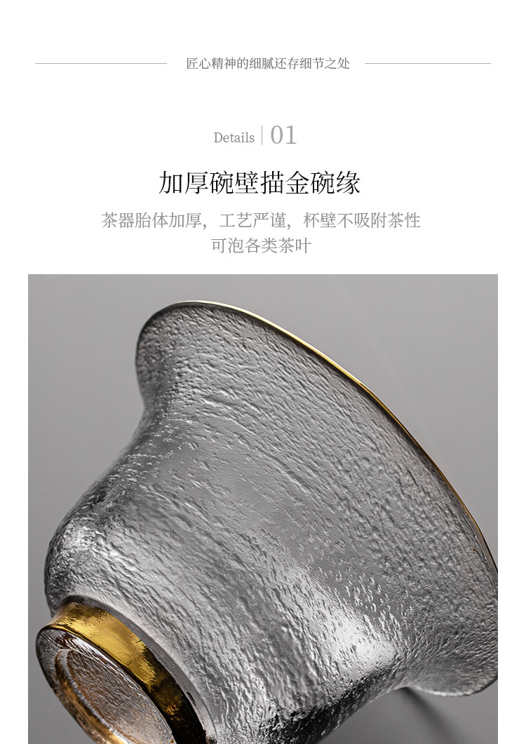 Bát nắp tam tài thủy tinh pha lê, bộ pha trà vân búa vàng, tách trà, phụ kiện Bộ trà Kungfu gia dụng, dày dặn không nóng tay