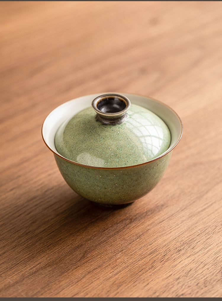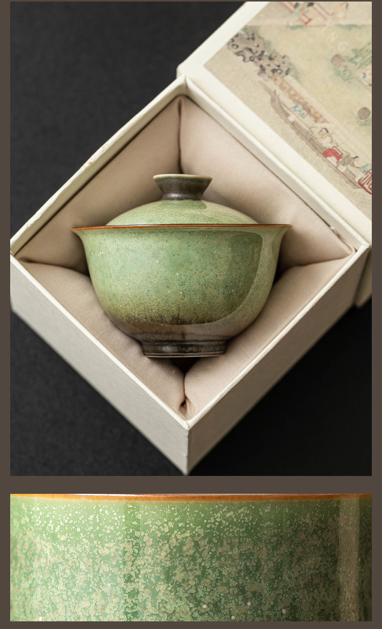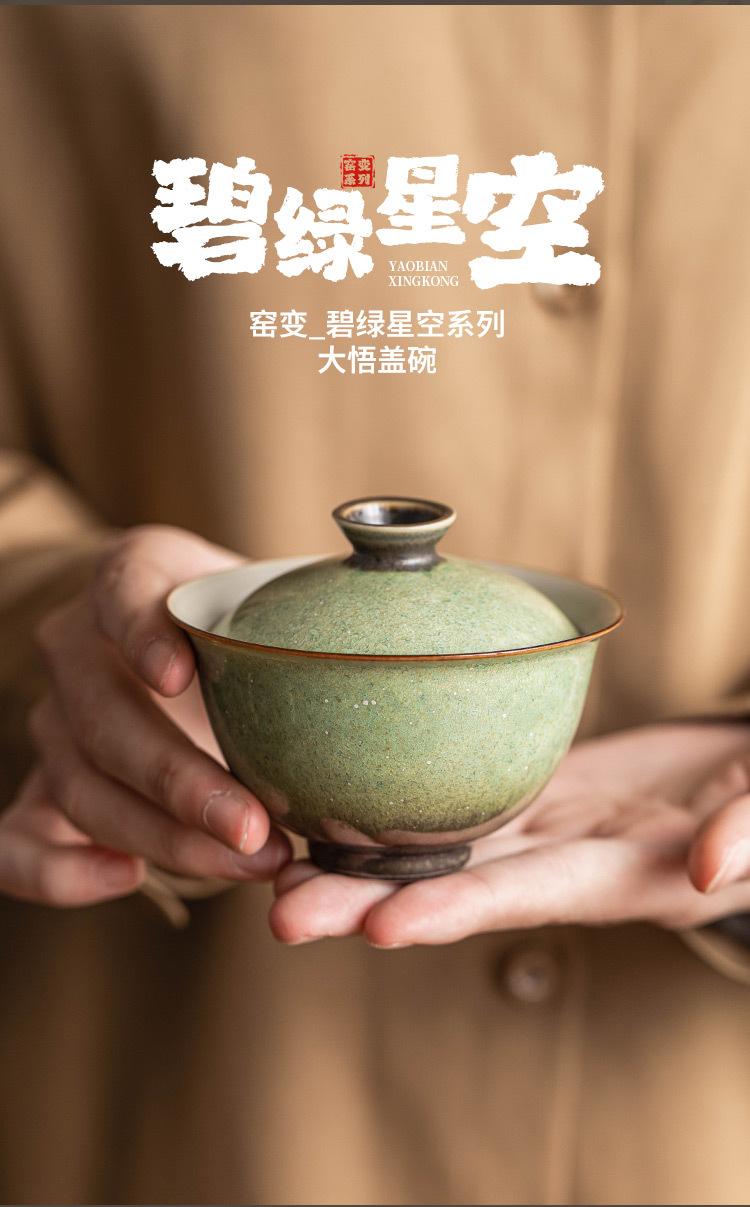 - Bát pha trà gốm sứ lò nung, bầu trời đầy sao xanh, bát có nắp đậy, cốc trà, bộ trà kung fu cổ điển làm bằng tay, đơn không nóng