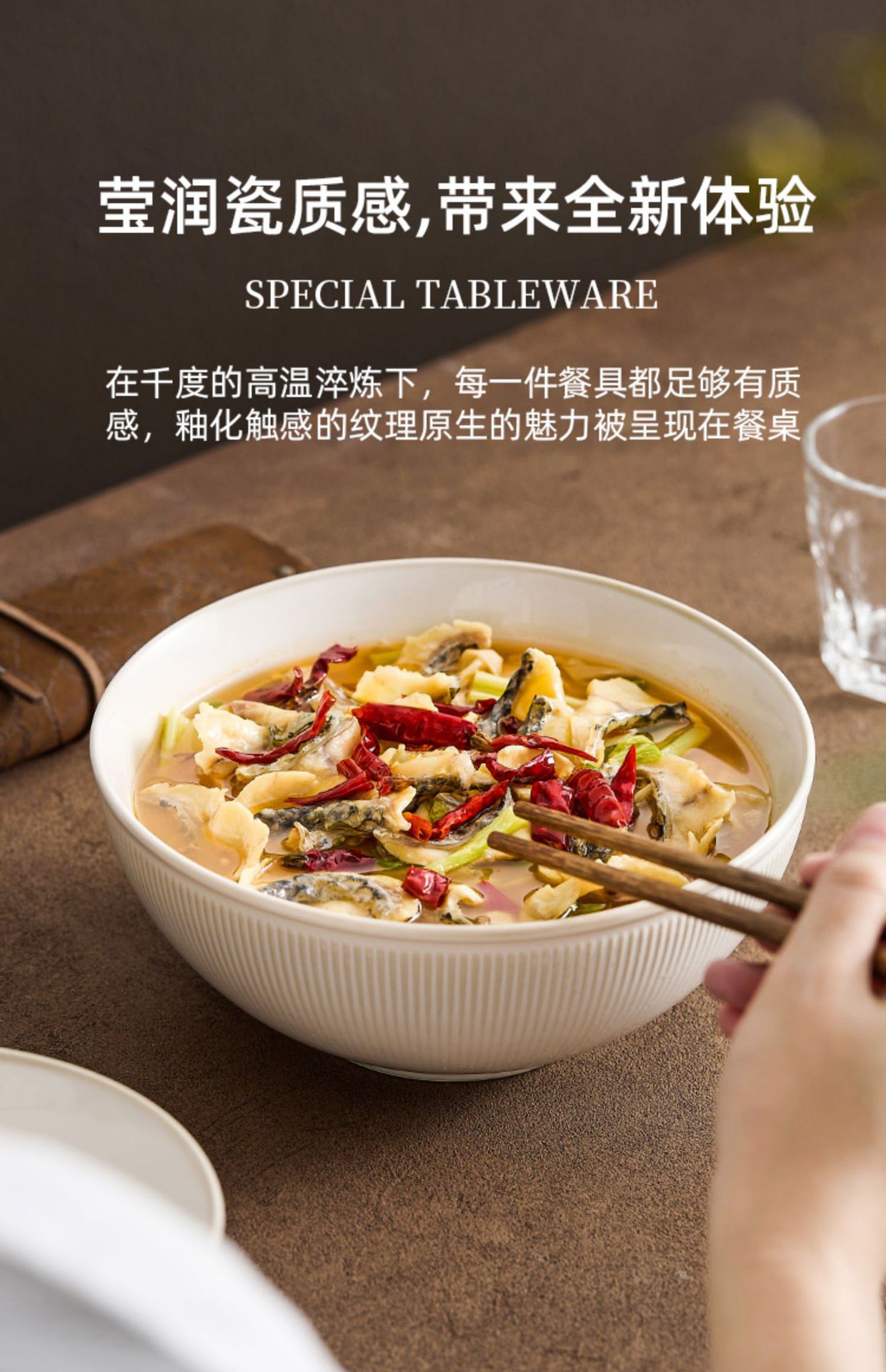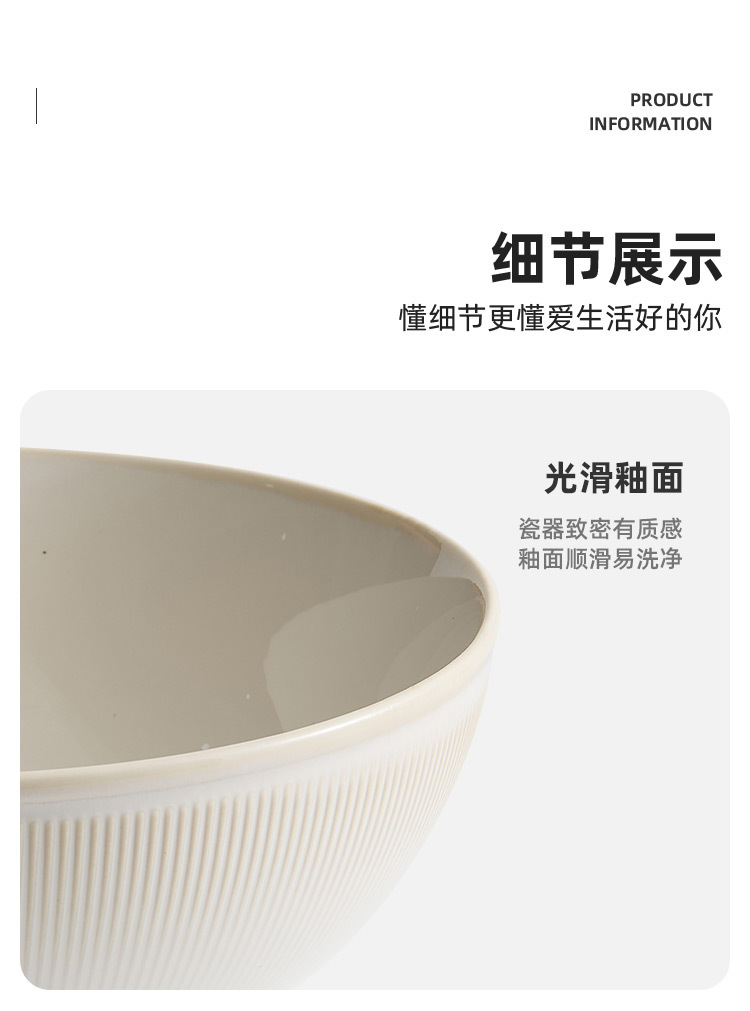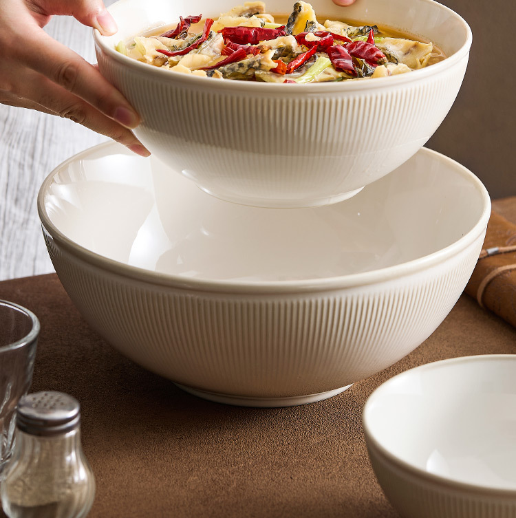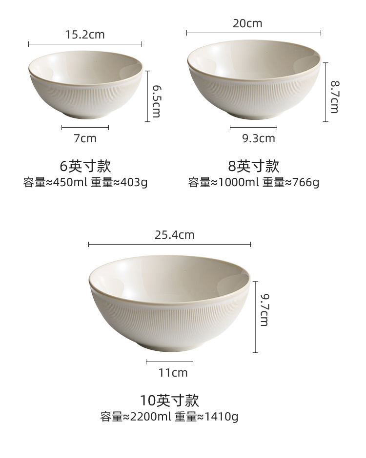 Bát súp gốm sứ đơn giản, bát mì, bát cơm, bát salad kiểu mới 2025, màu be, đựng cá cải muối luộc, cỡ lớn