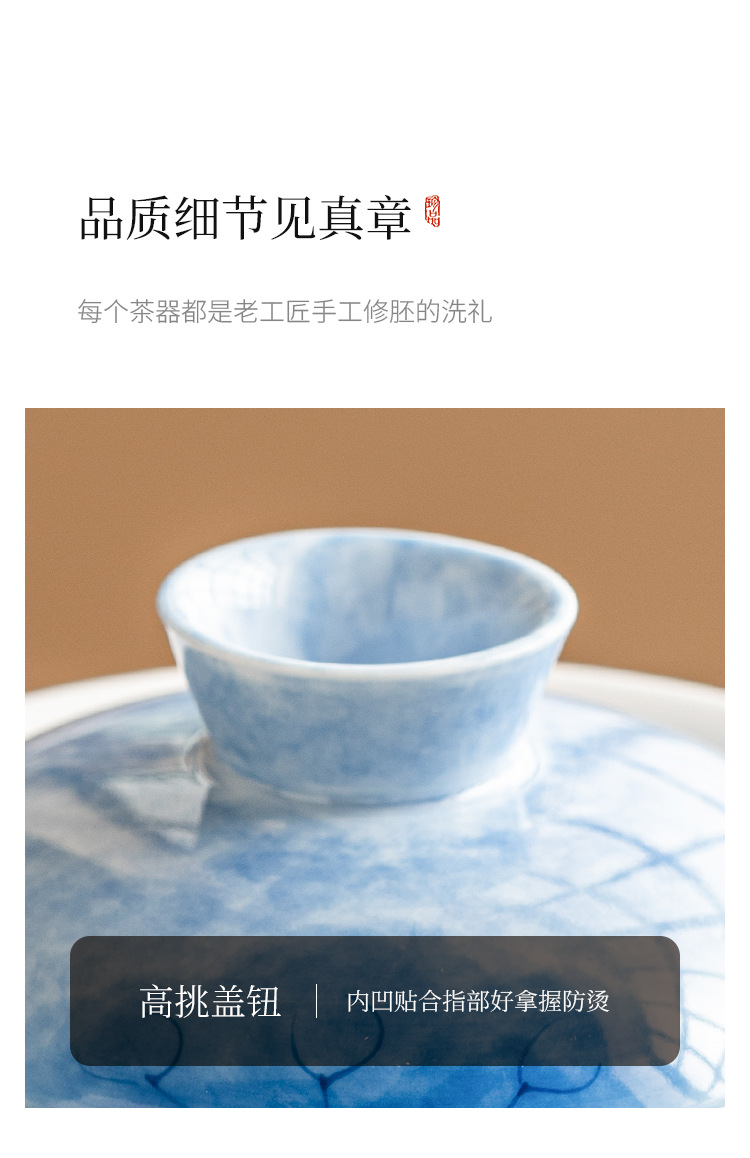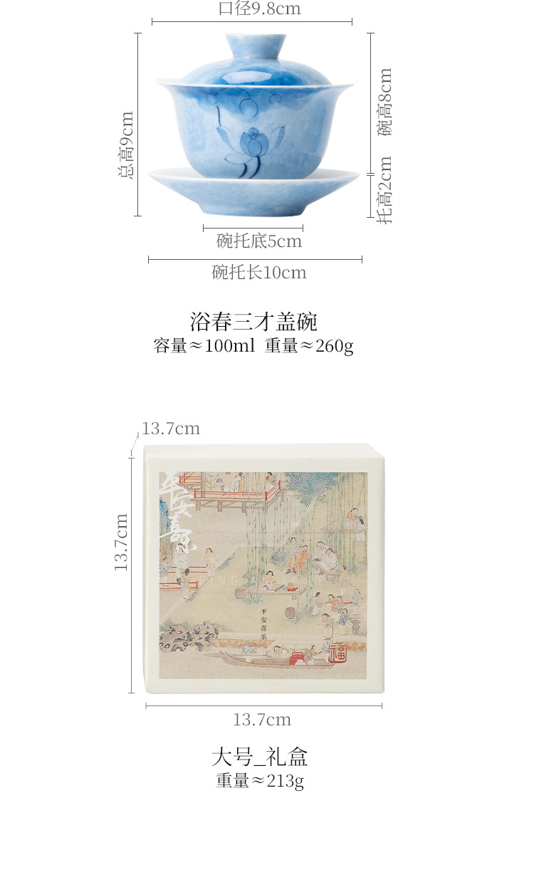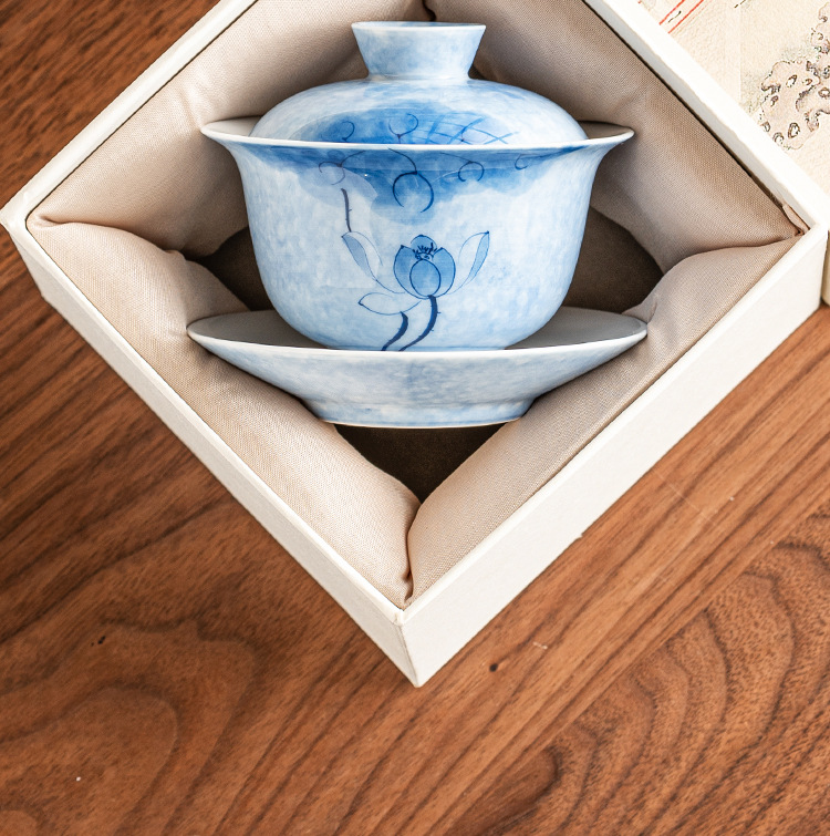 - Bát tam tài hoa sen xanh vẽ tay, cốc trà sứ Kung Fu, Bộ trà cao cấp đơn chống bỏng, bát trà có nắp cỡ lớn
