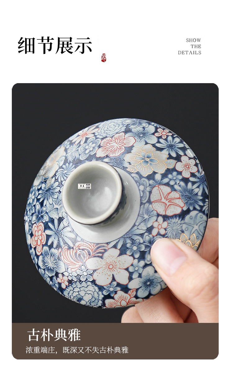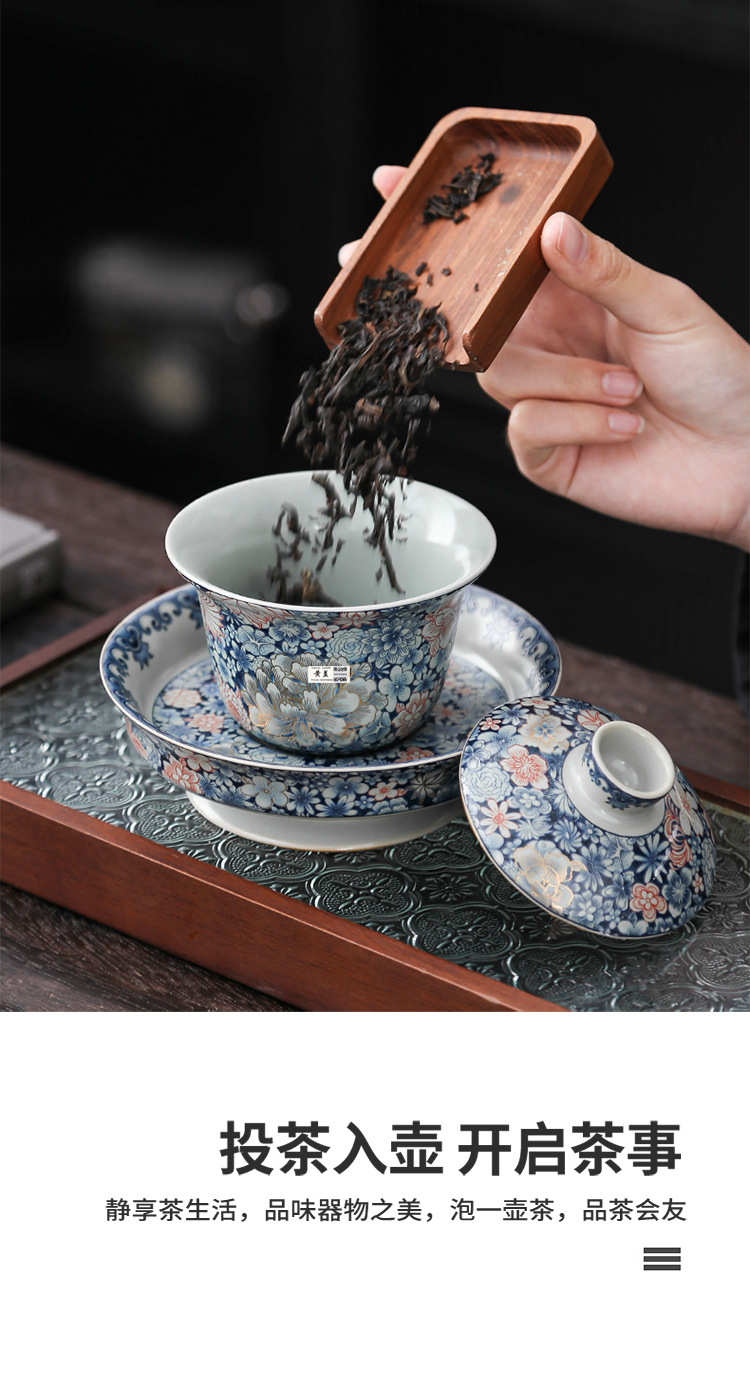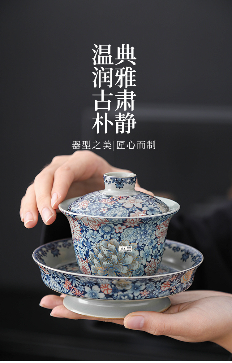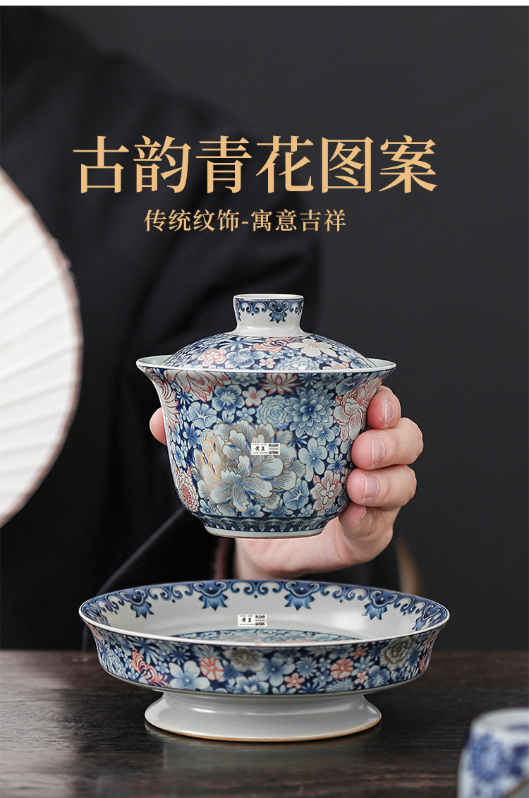 Bát tam tài tráng men cổ điển sang trọng nhẹ bát trà gốm sứ gia dụng cỡ lớn cốc trà bộ trà kungfu cao cấp một chiếc