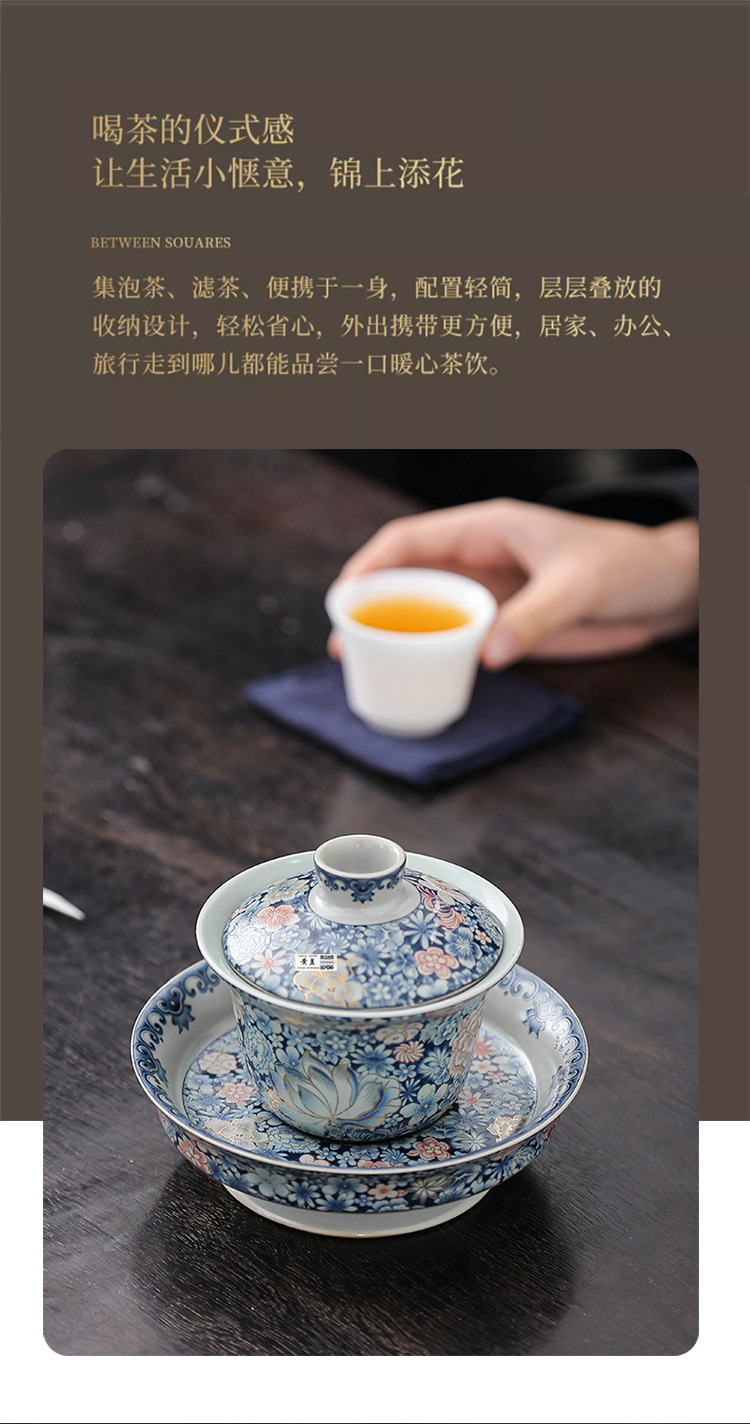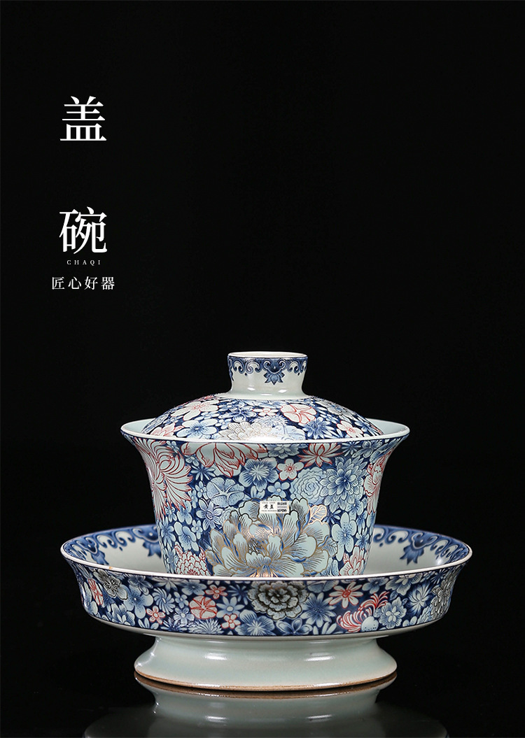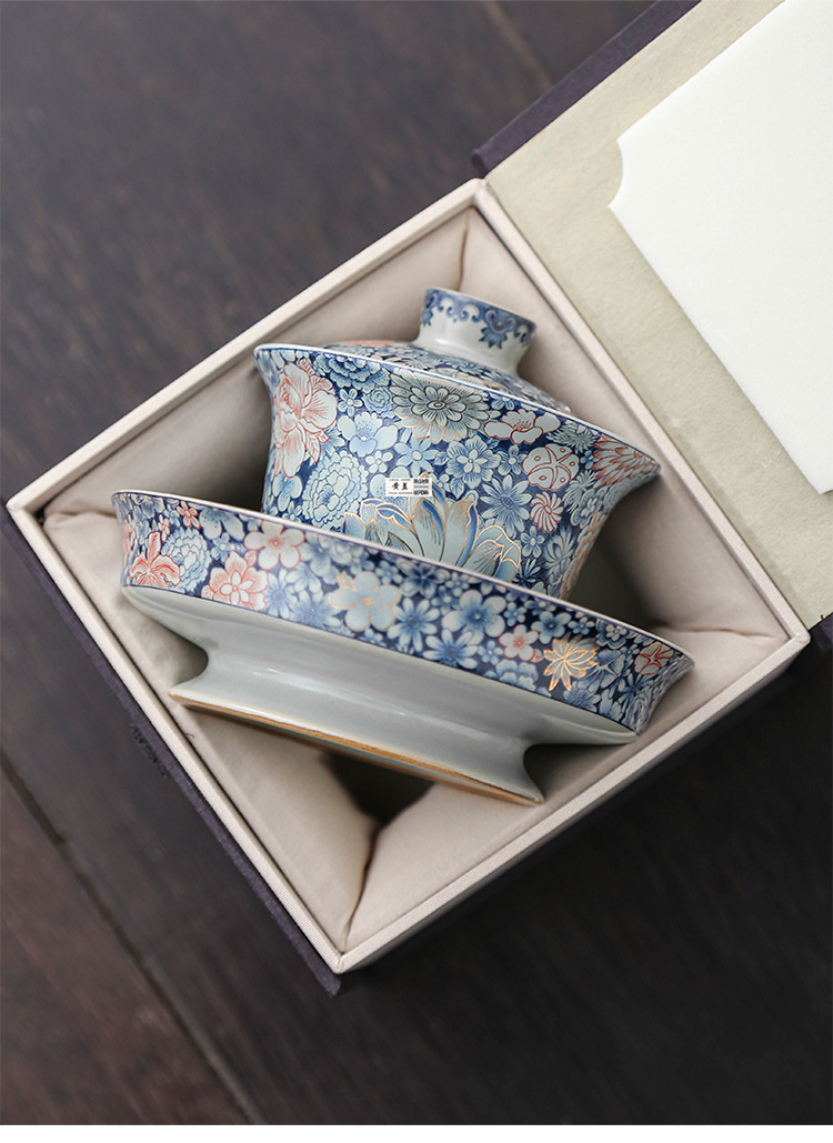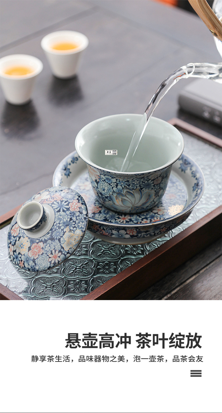 Bát tam tài tráng men cổ điển sang trọng nhẹ bát trà gốm sứ gia dụng cỡ lớn cốc trà bộ trà kungfu cao cấp một chiếc