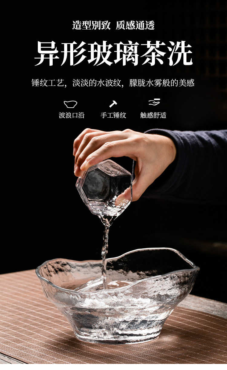- Bát trà Bát đựng nước rửa bút rửa trà thủy tinh cực kỳ cực lớn dụng cụ trà Kung Fu Nhật Bản gia dụng Phụ kiện Khay hoa quả trà đạo