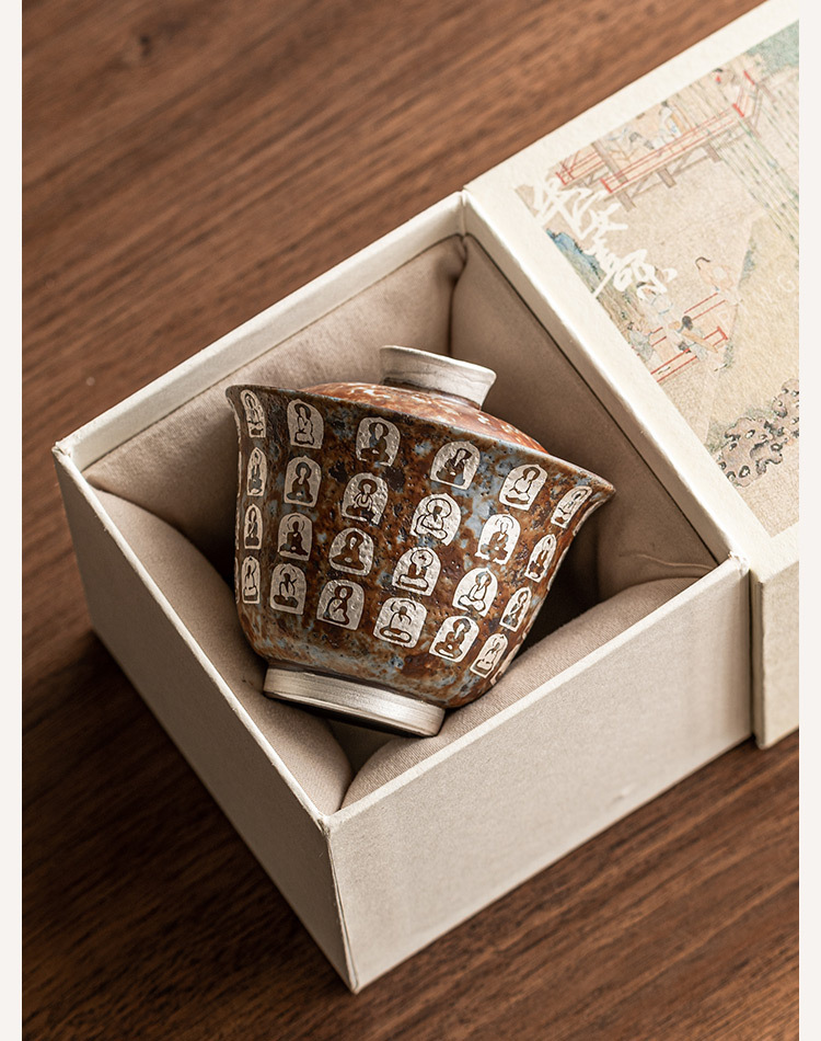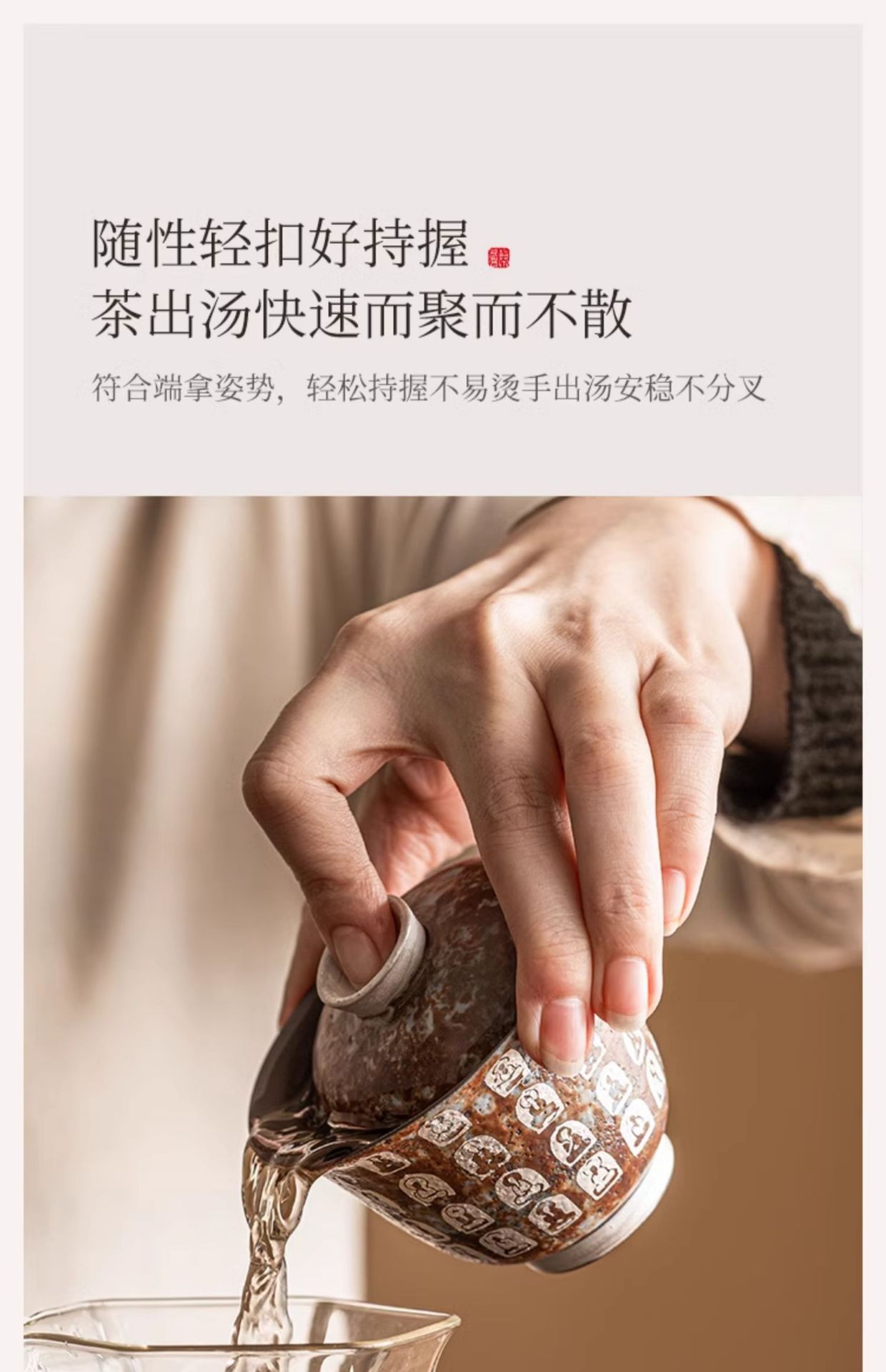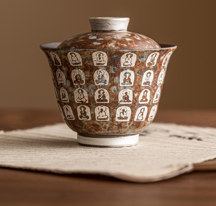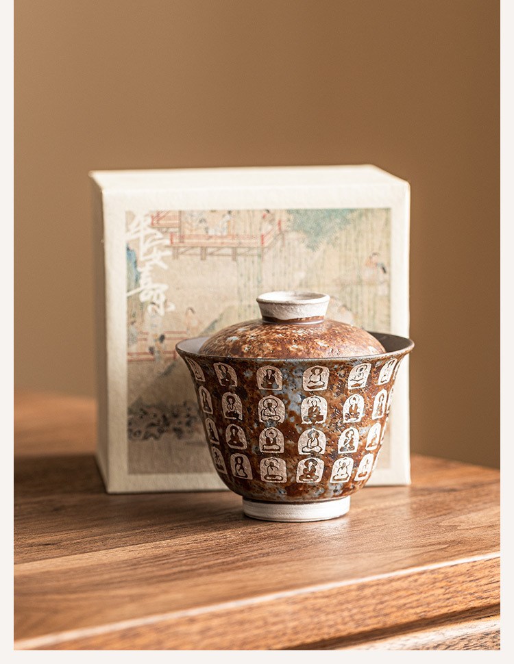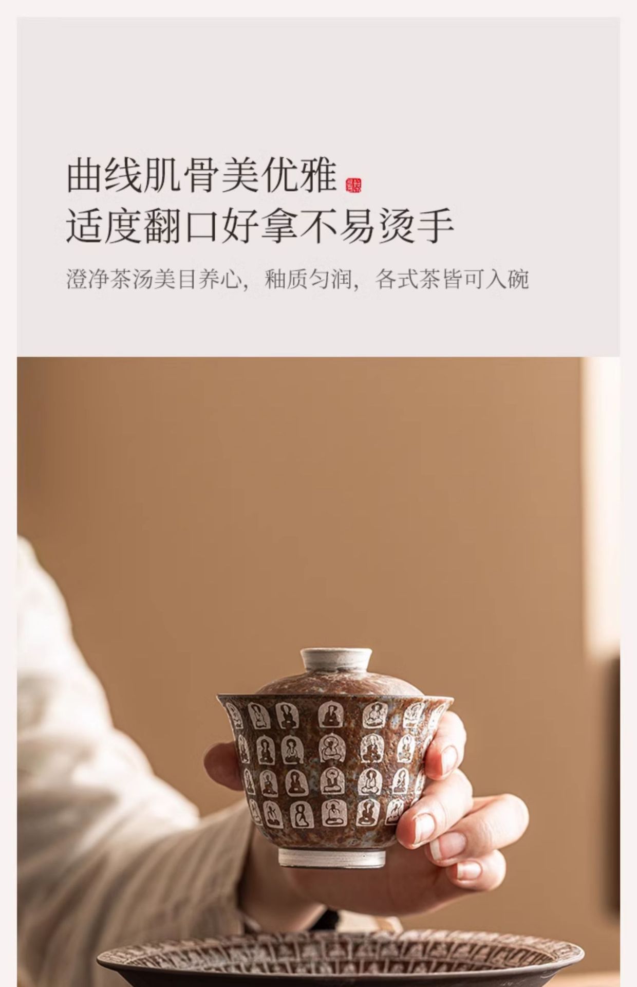 - Bát trà có nắp dòng Vạn Phật mạ bạc cốc trà dụng cụ pha trà Kung Fu kiểu Trung Quốc gia dụng Bát trà đơn cao cấp có nắp