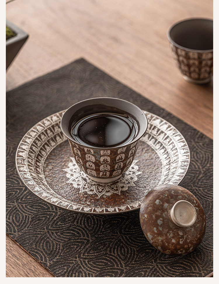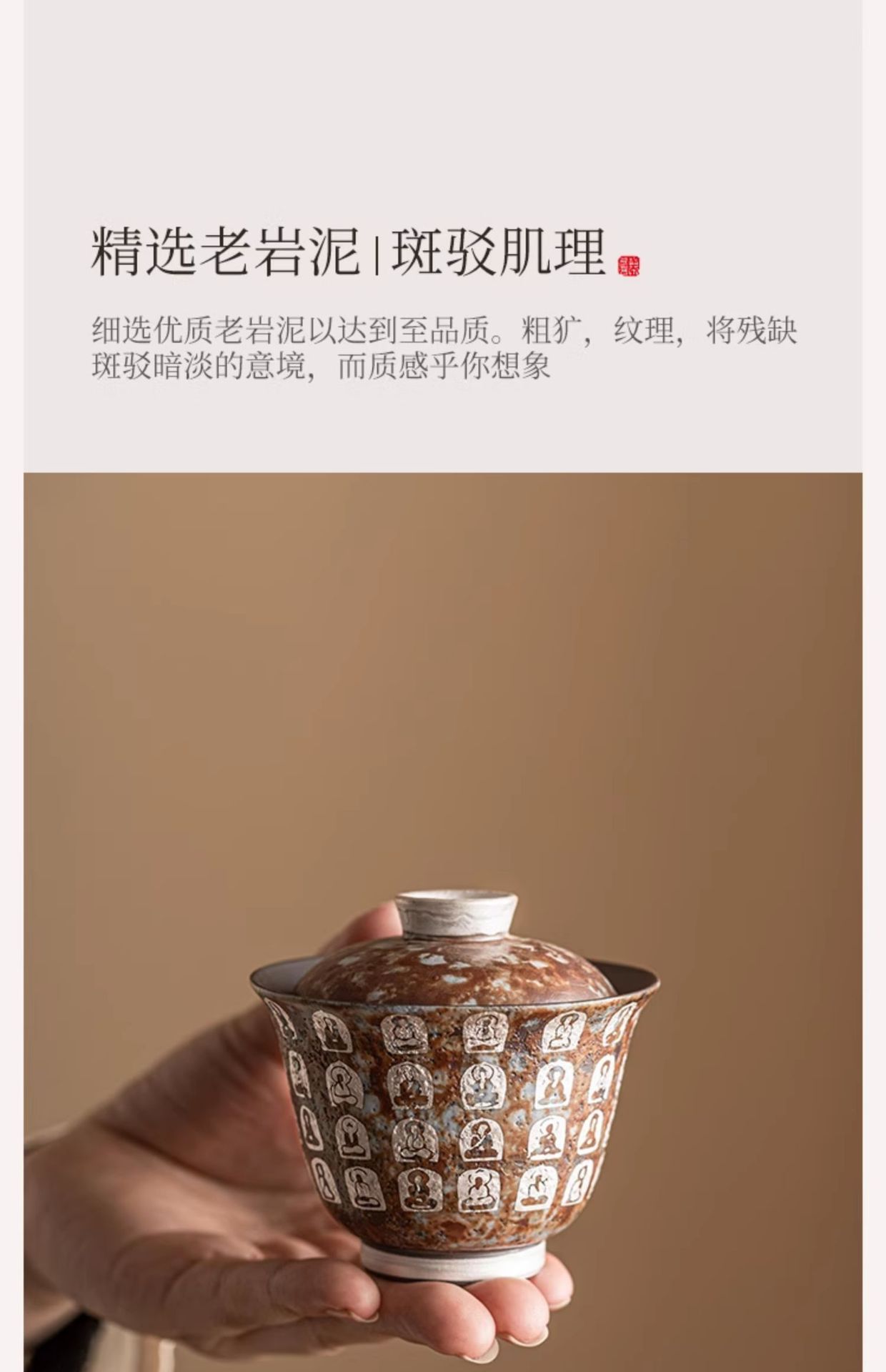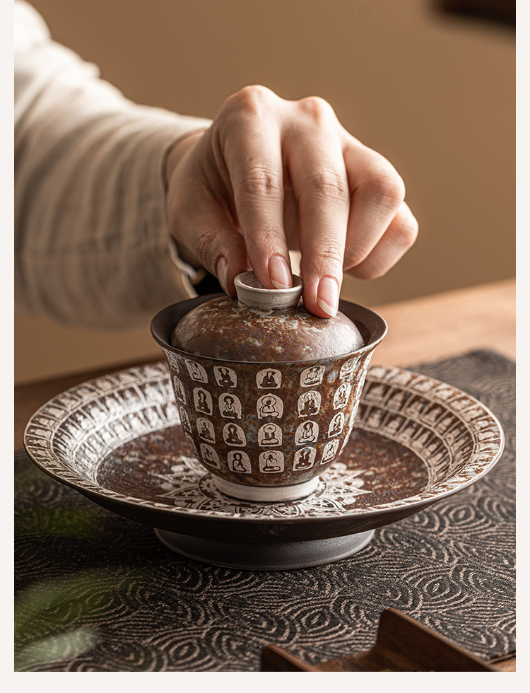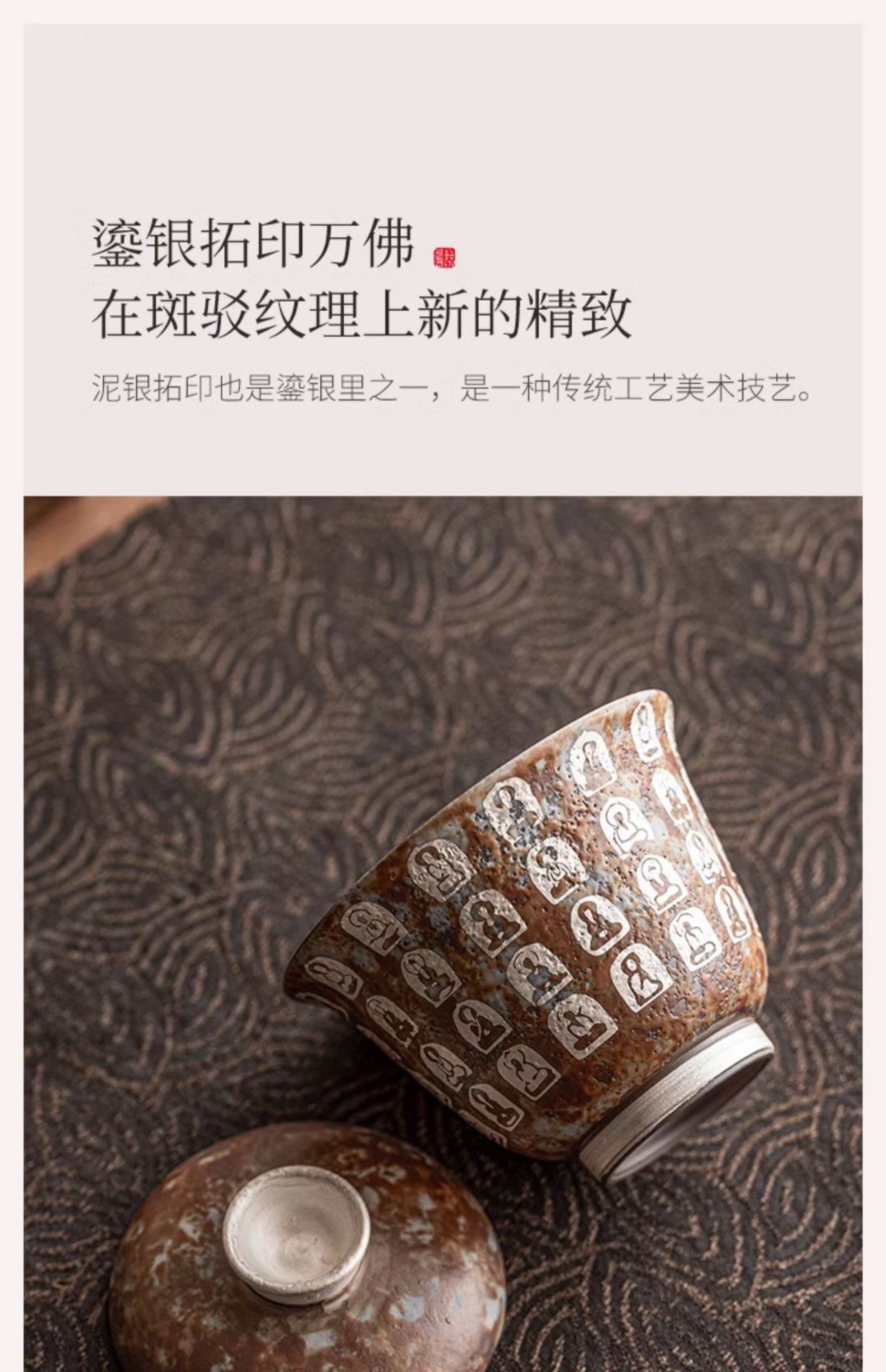 Bát trà có nắp dòng Vạn Phật mạ bạc cốc trà dụng cụ pha trà Kung Fu kiểu Trung Quốc gia dụng Bát trà đơn cao cấp có nắp