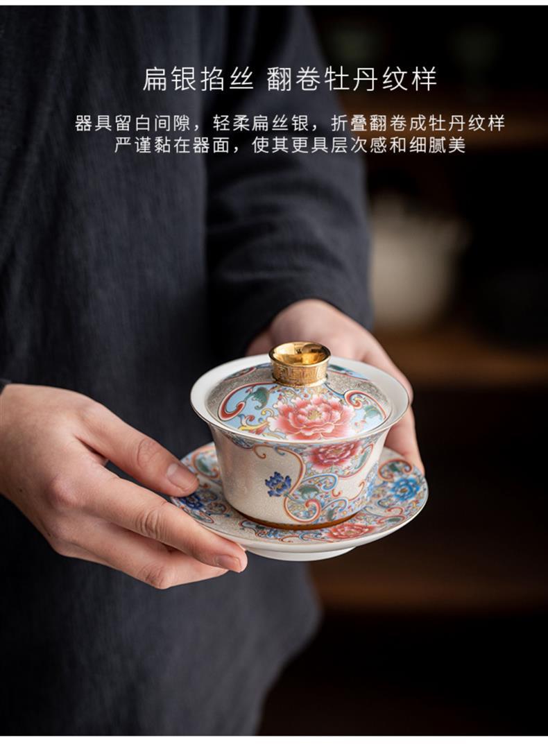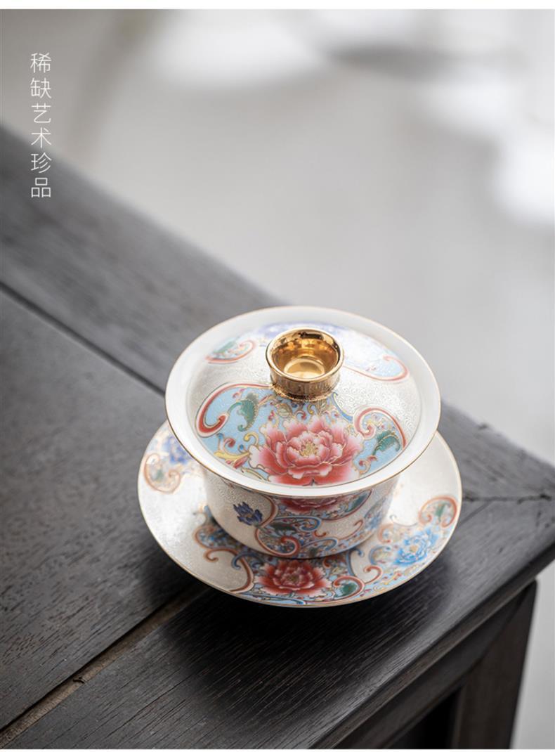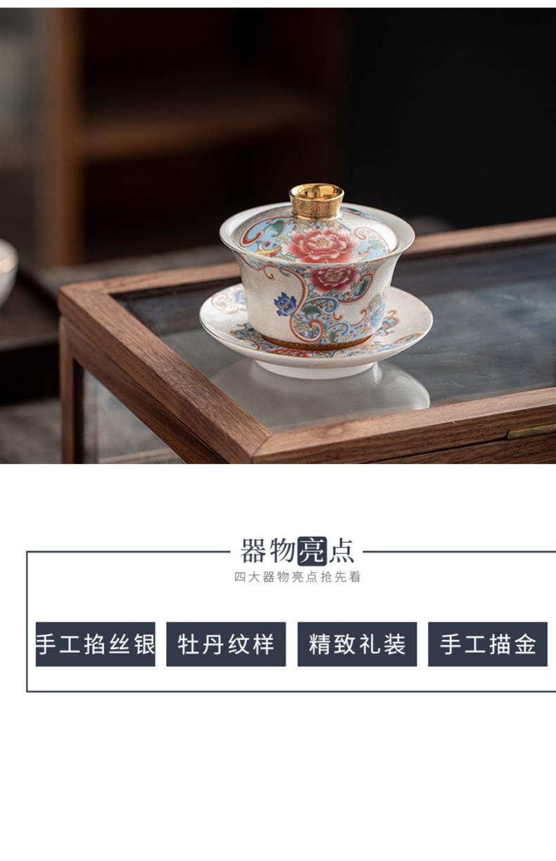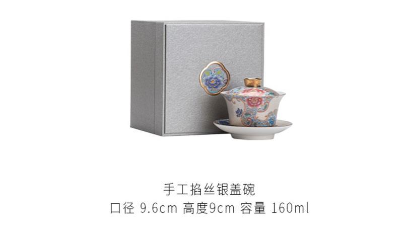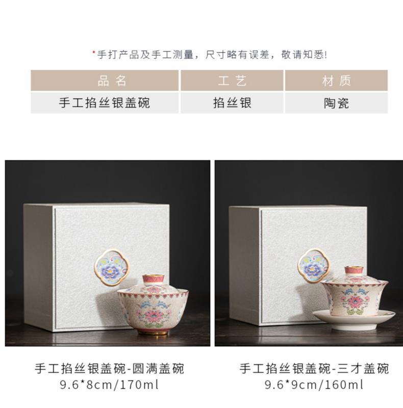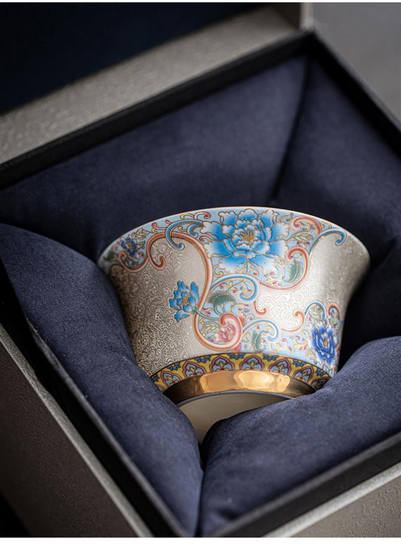 Bát trà tam tài bạc chạm khắc thủ công cốc trà đồ gốm sứ gia dụng bát trà pha trà men vàng hộp quà