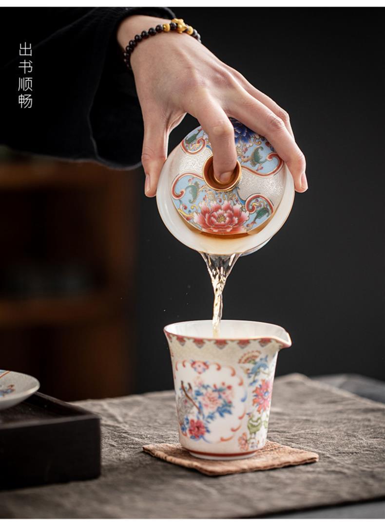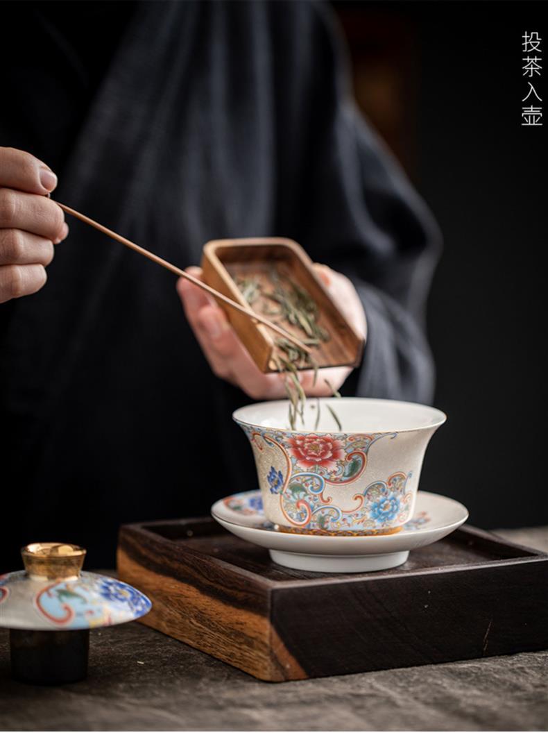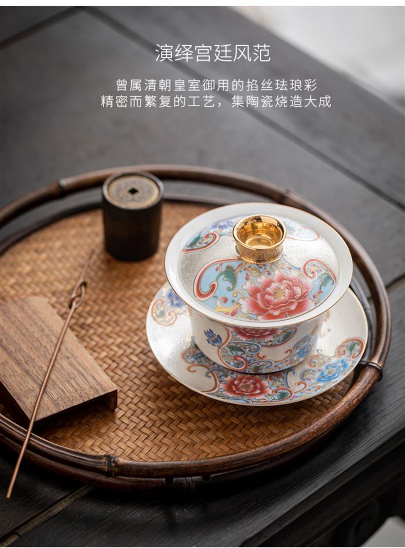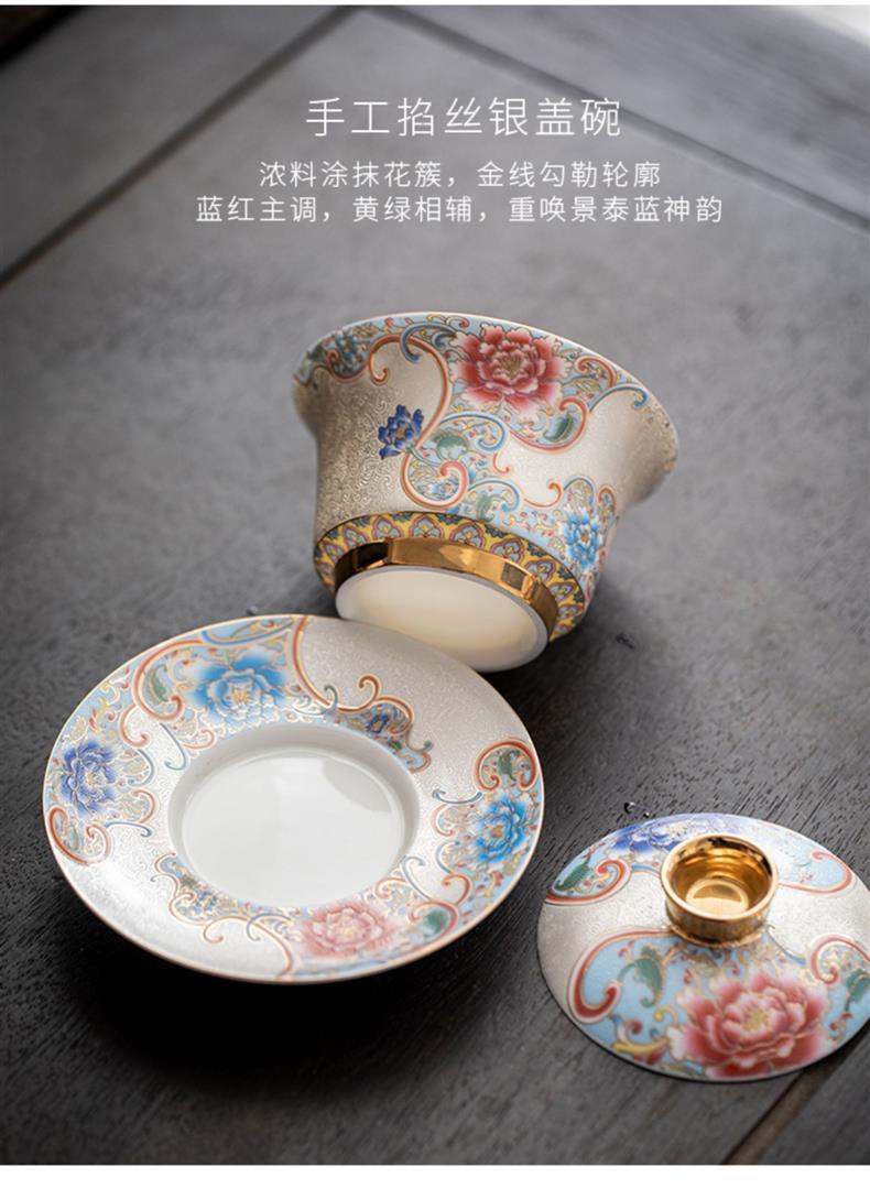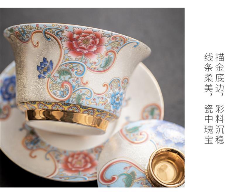 Bát trà tam tài bạc chạm khắc thủ công cốc trà đồ gốm sứ gia dụng bát trà pha trà men vàng hộp quà