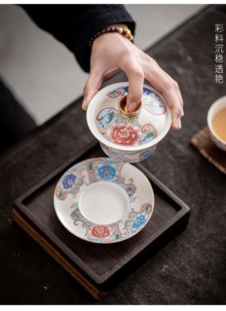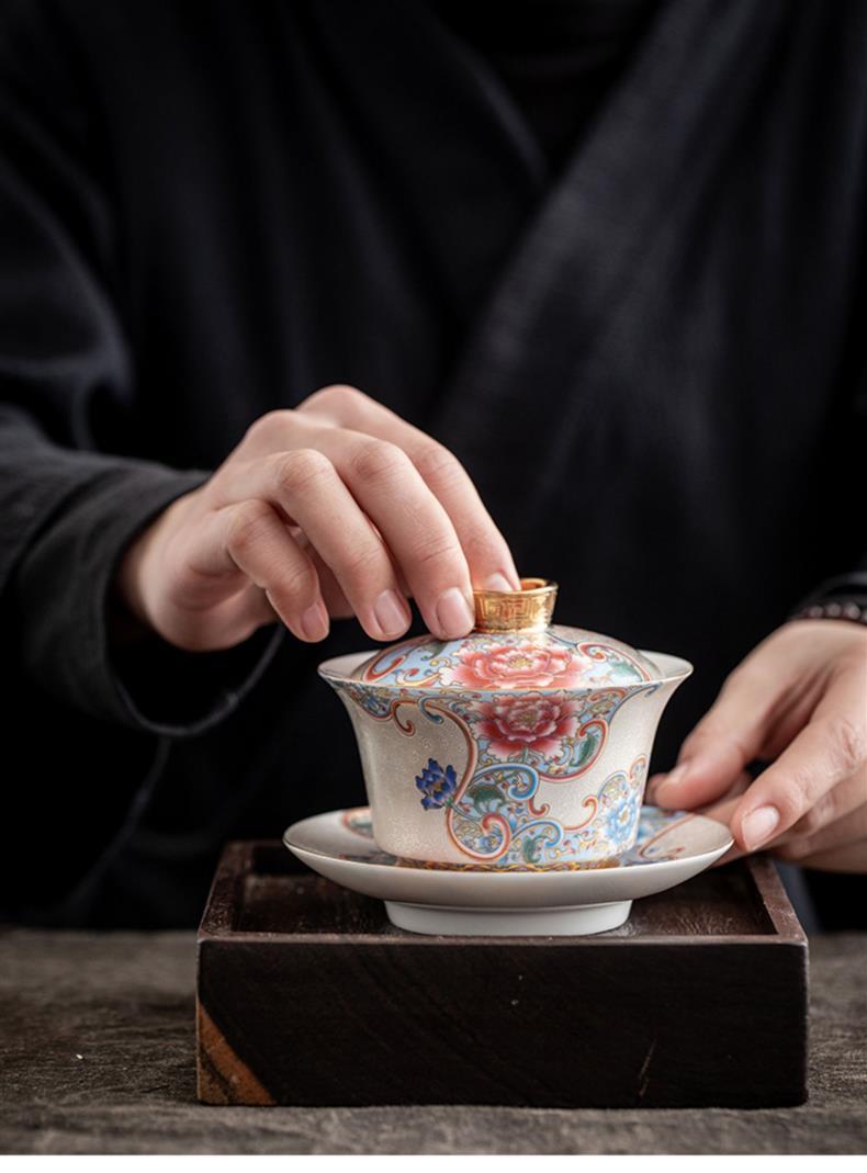 - Bát trà tam tài bạc chạm khắc thủ công cốc trà đồ gốm sứ gia dụng bát trà pha trà men vàng hộp quà