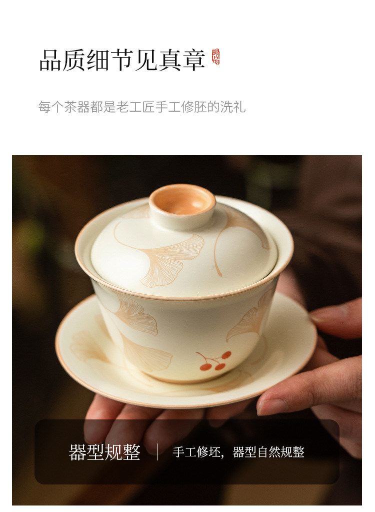- Bát trà tam tài bạch quả màu be, cốc trà pha trà gia dụng, bộ trà gốm sứ chống bỏng có nắp, hộp quà một chiếc