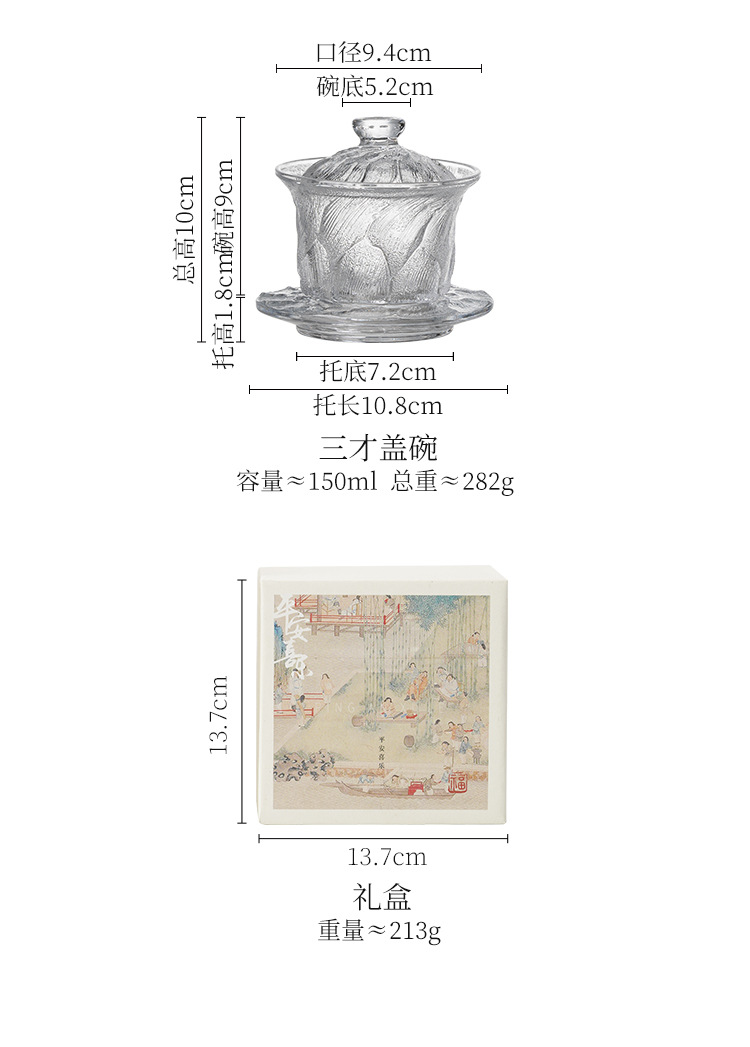 Bát trà tráng men đơn phong cách Trung Quốc có nắp không nóng Bộ trà Kung Fu bát pha trà gia dụng