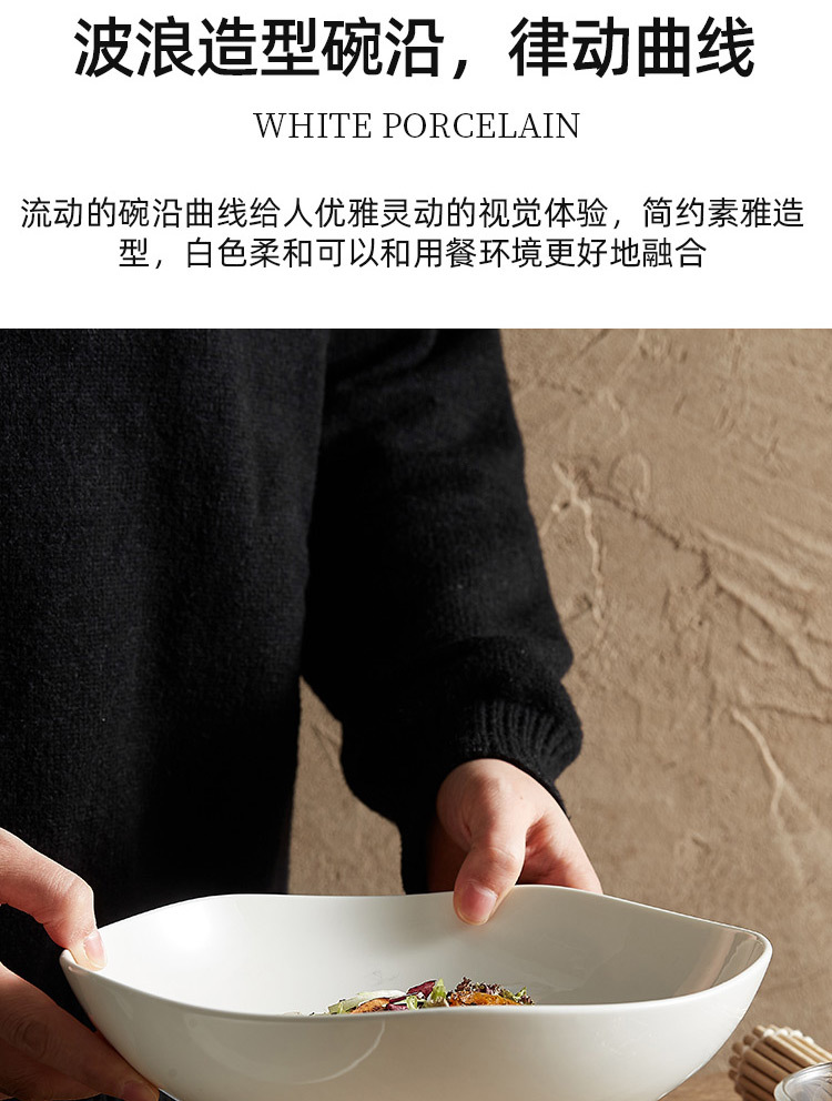 - Bát và đĩa sứ Dehua dùng trong nhà, mẫu mới cao cấp 2025, dành cho câu lạc bộ, khách sạn, nhà hàng, bát salad kiểu sóng, bát súp mì kiểu Nhật
