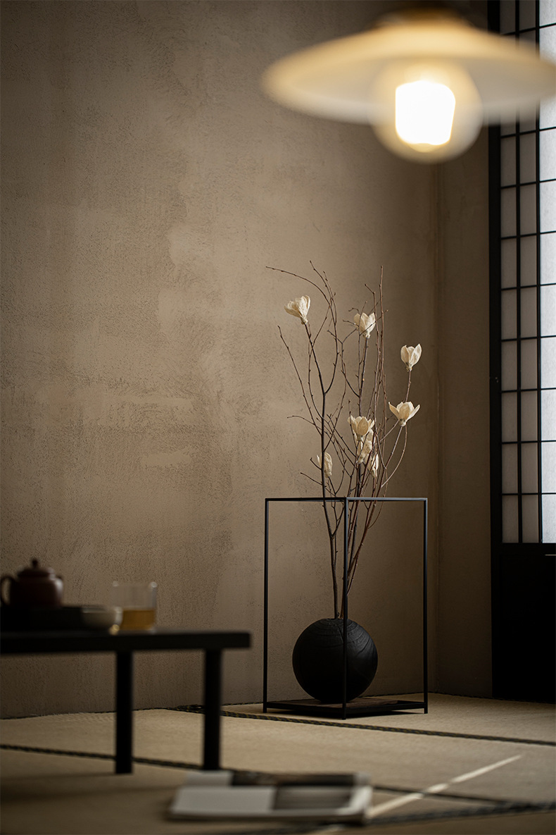 - Bầu không khí nghệ thuật Nhật Bản sáng tạo, đồ trang trí hoa bằng sắt, đồ trang trí không gian phòng trà, bình gỗ nguyên khối cổ điển