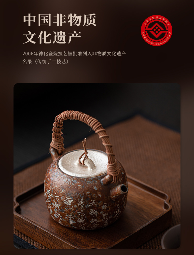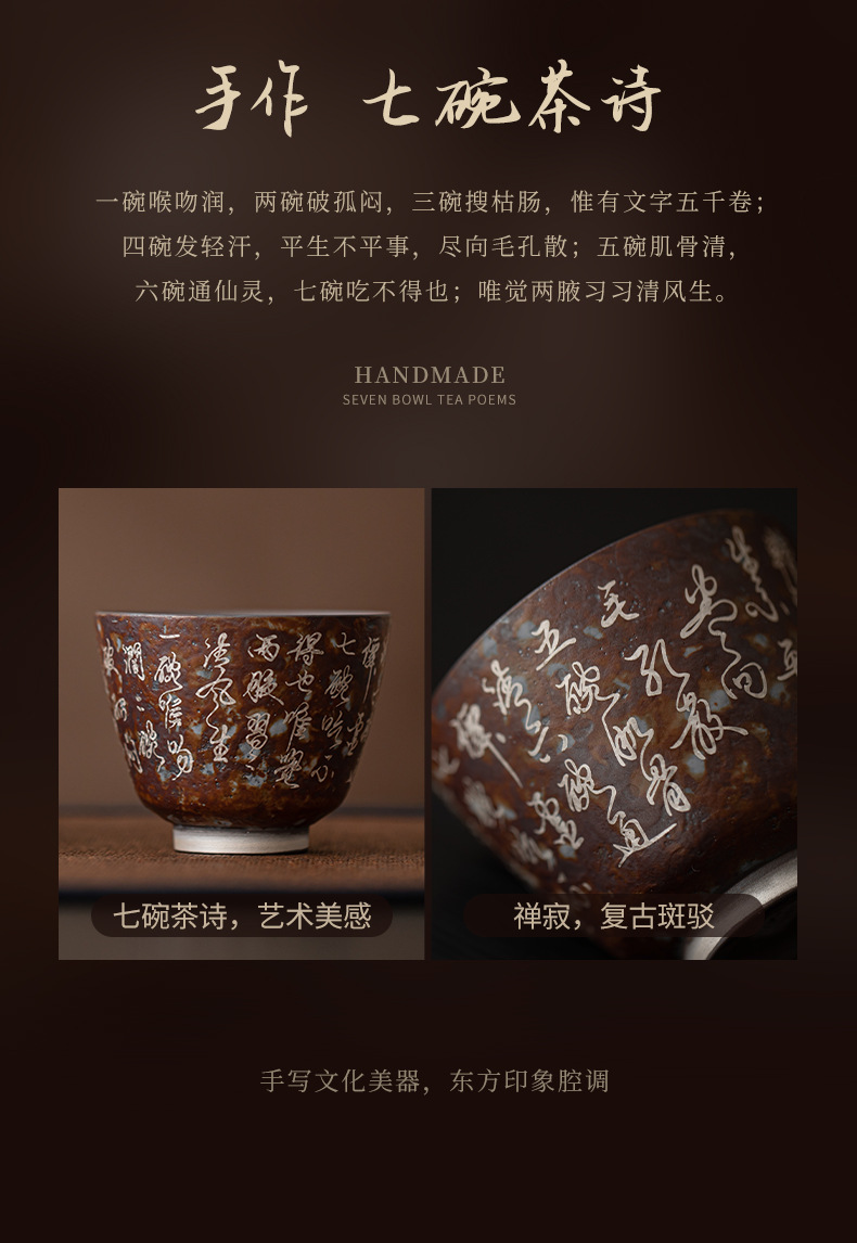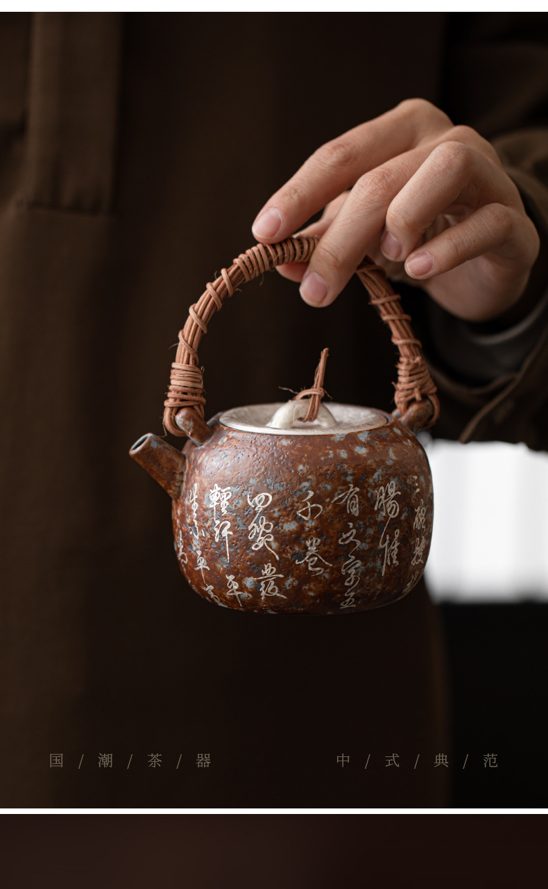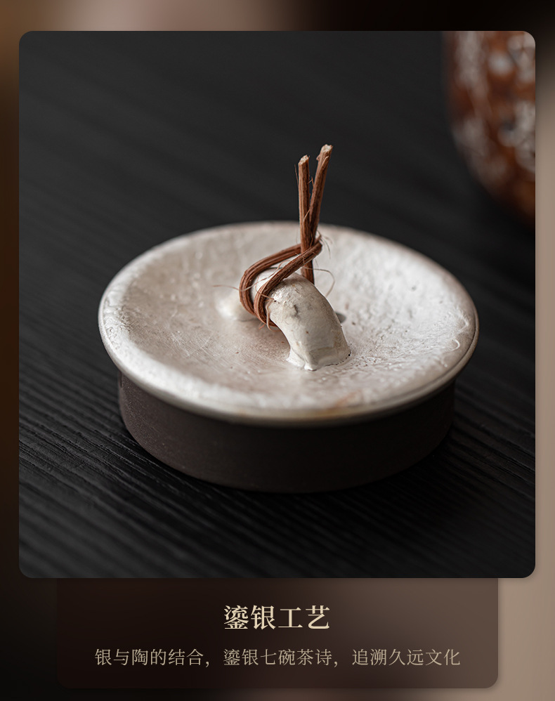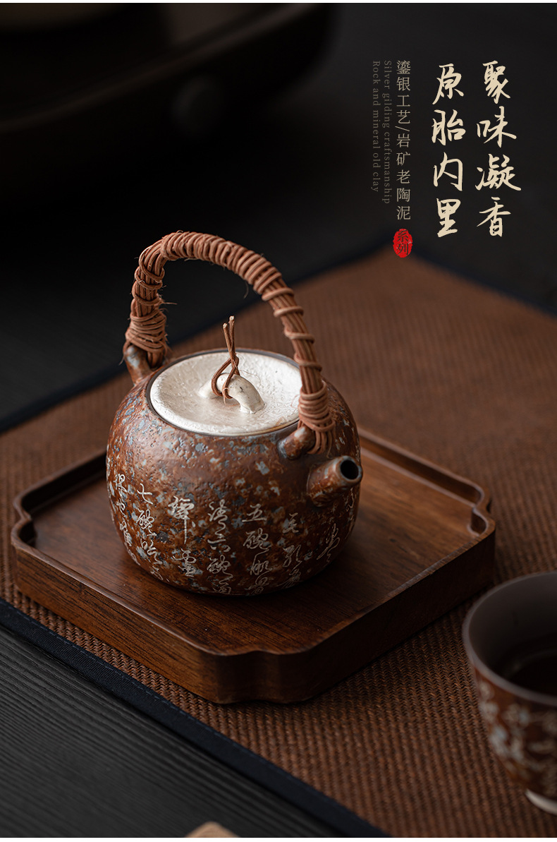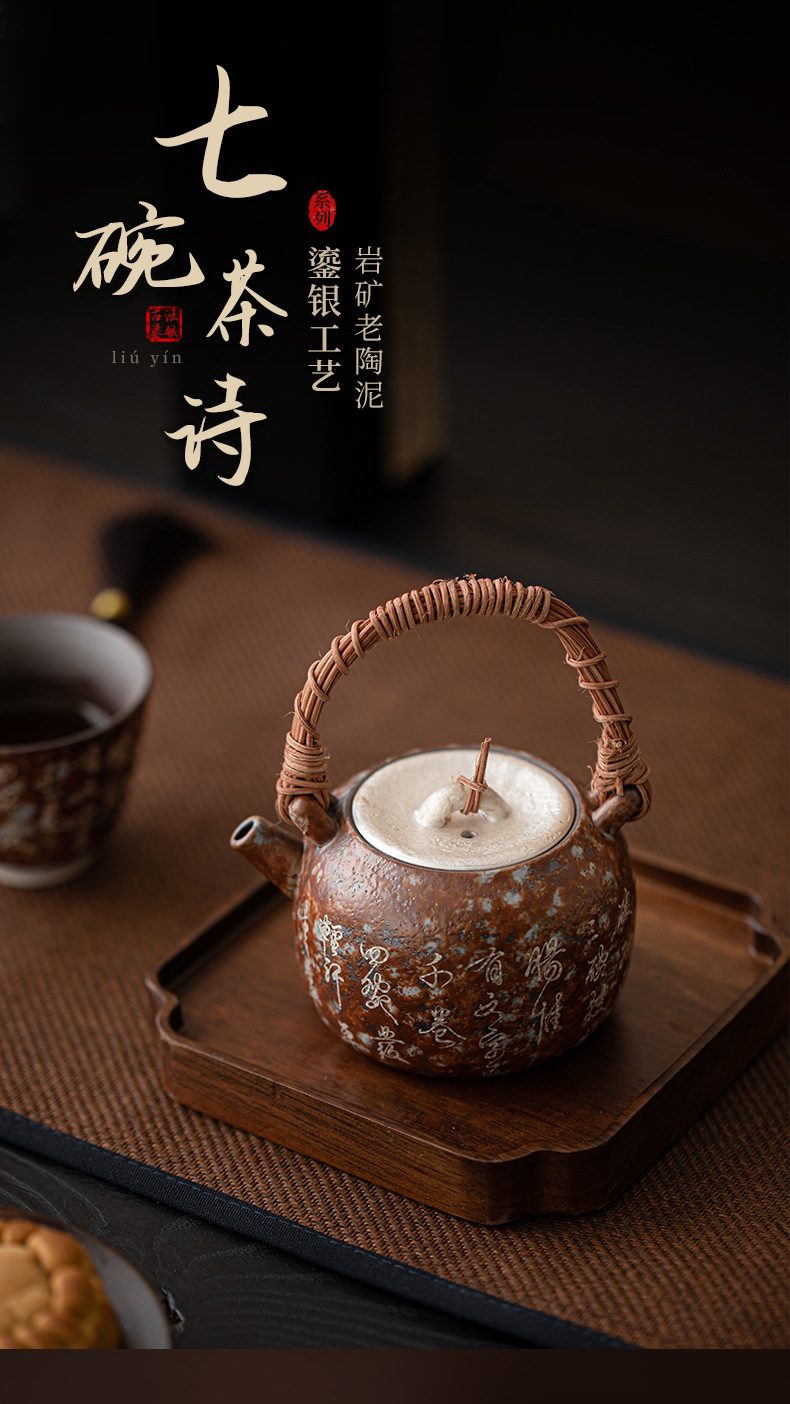 - Bảy bát trà thơ mạ bạc mây đan chùm ấm pha trà cổ điển đất sét cũ lọc ấm đơn bộ trà Kung Fu hộp quà