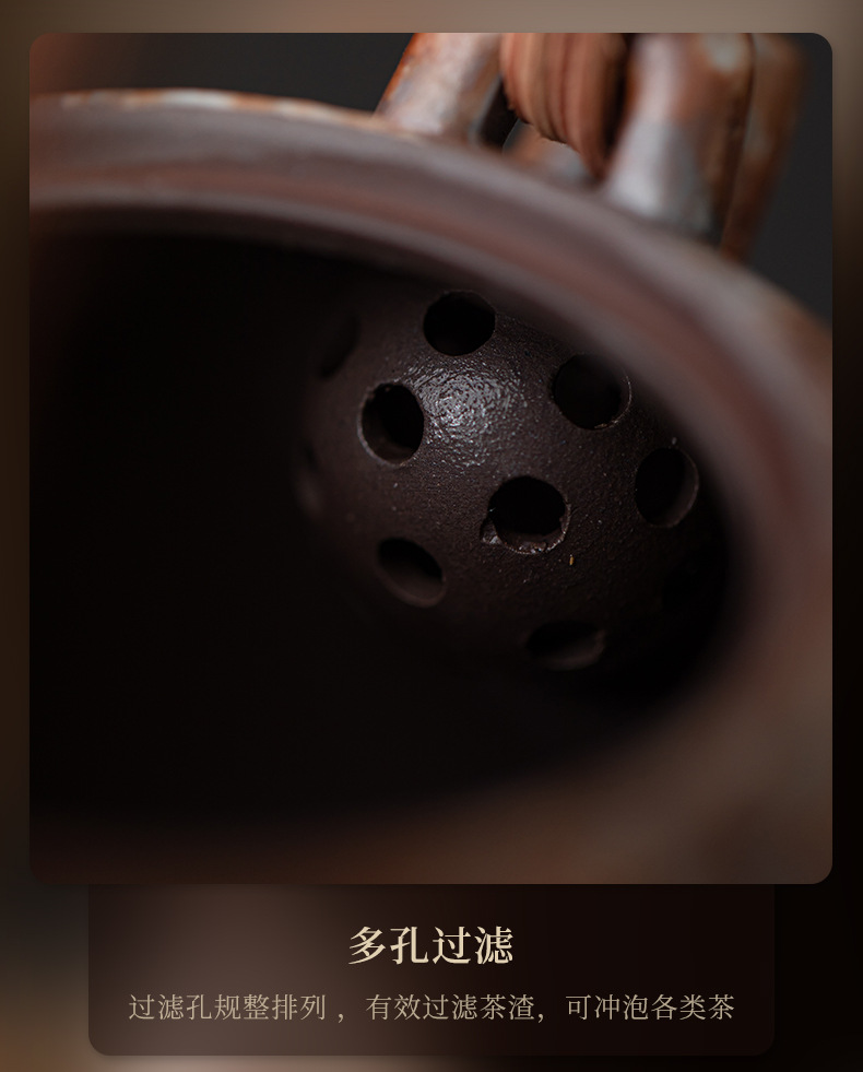 Bảy bát trà thơ mạ bạc mây đan chùm ấm pha trà cổ điển đất sét cũ lọc ấm đơn bộ trà Kung Fu hộp quà