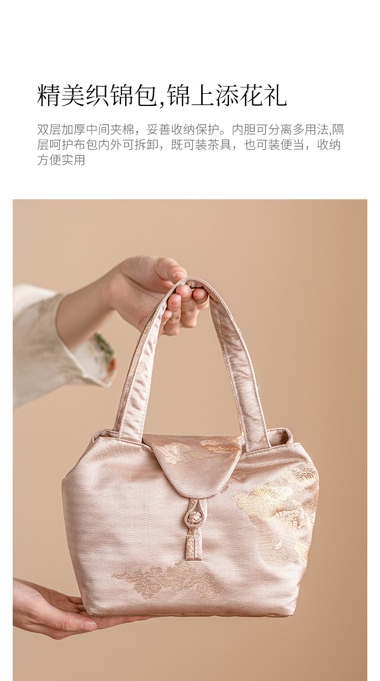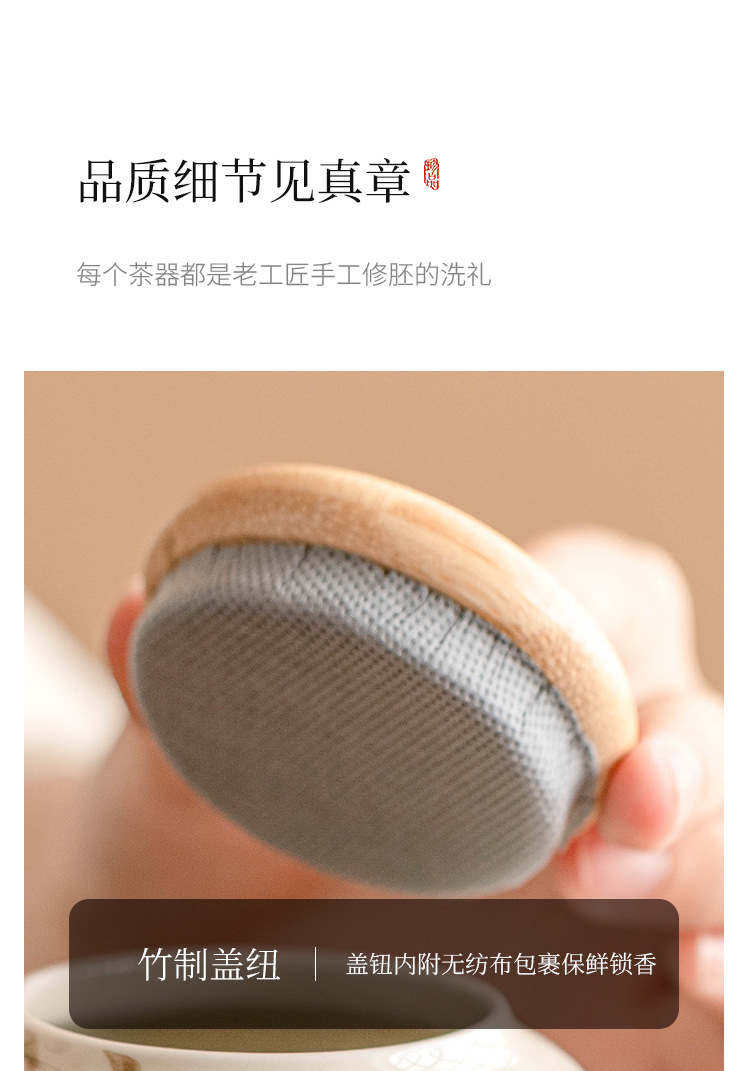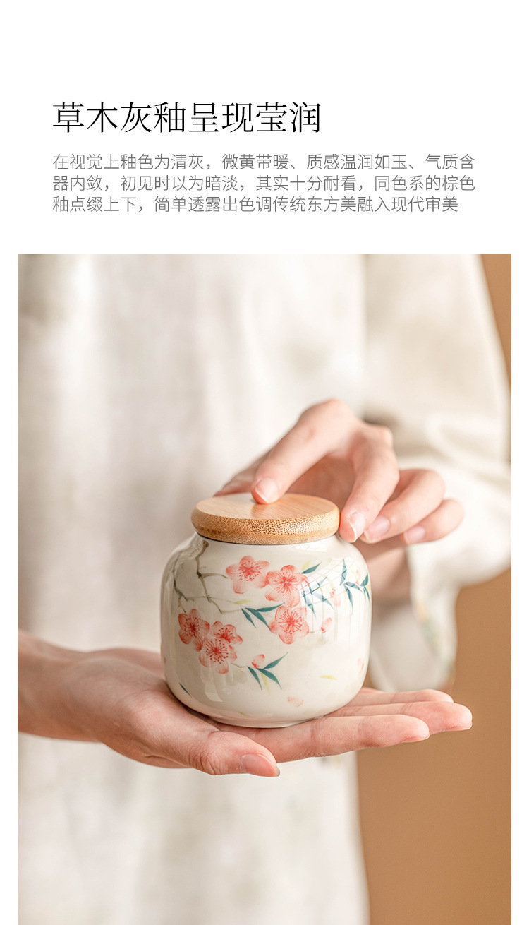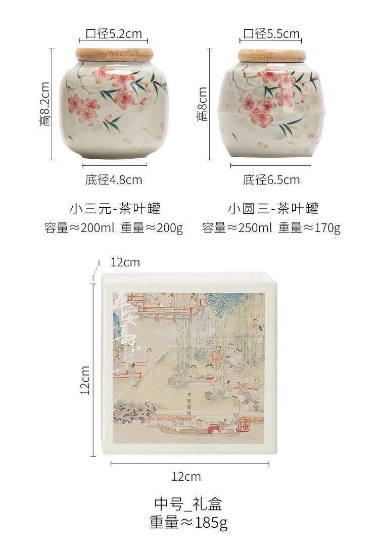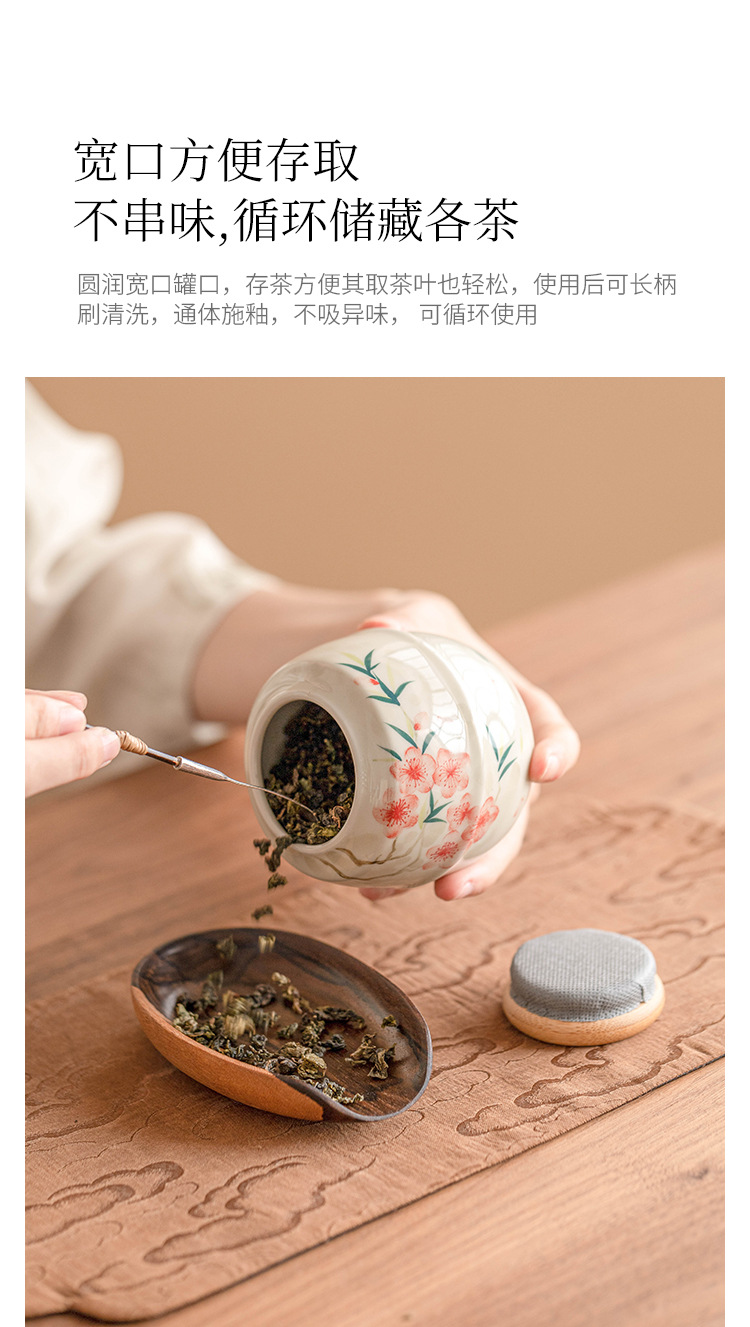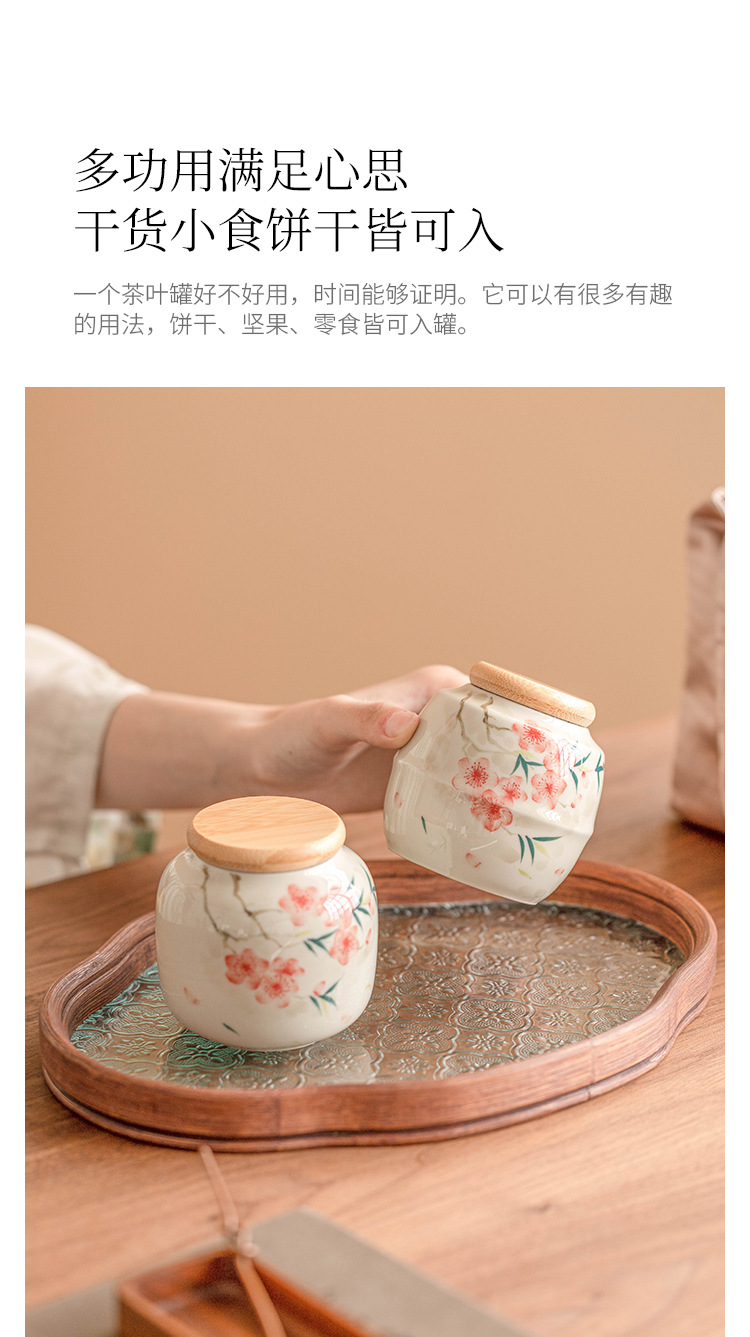 Bể trà ba nhân dân tệ hoa đào vẽ tay, bể kín, bể chứa trà cầm tay chống ẩm, bể chứa, bộ trà đơn gốm sứ