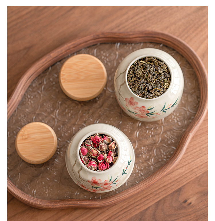 - Bể trà ba nhân dân tệ hoa đào vẽ tay, bể kín, bể chứa trà cầm tay chống ẩm, bể chứa, bộ trà đơn gốm sứ