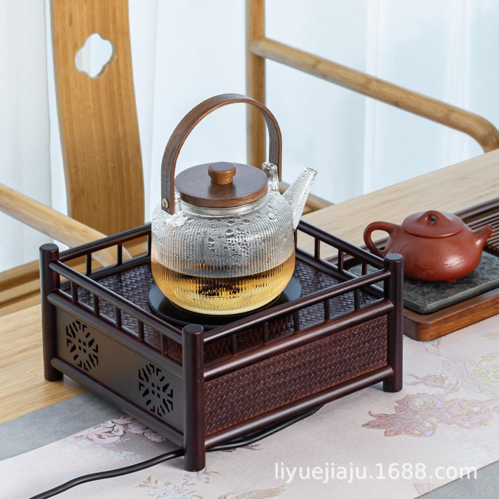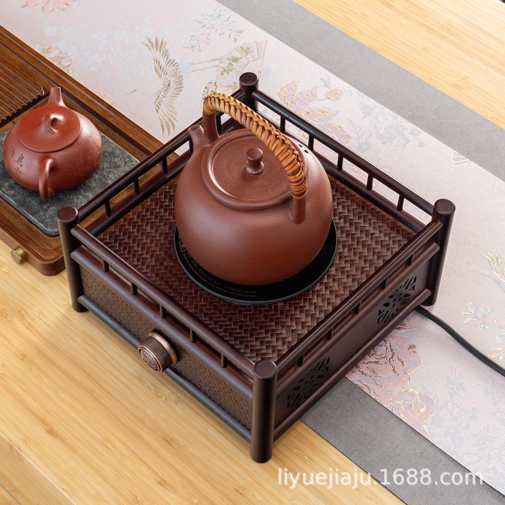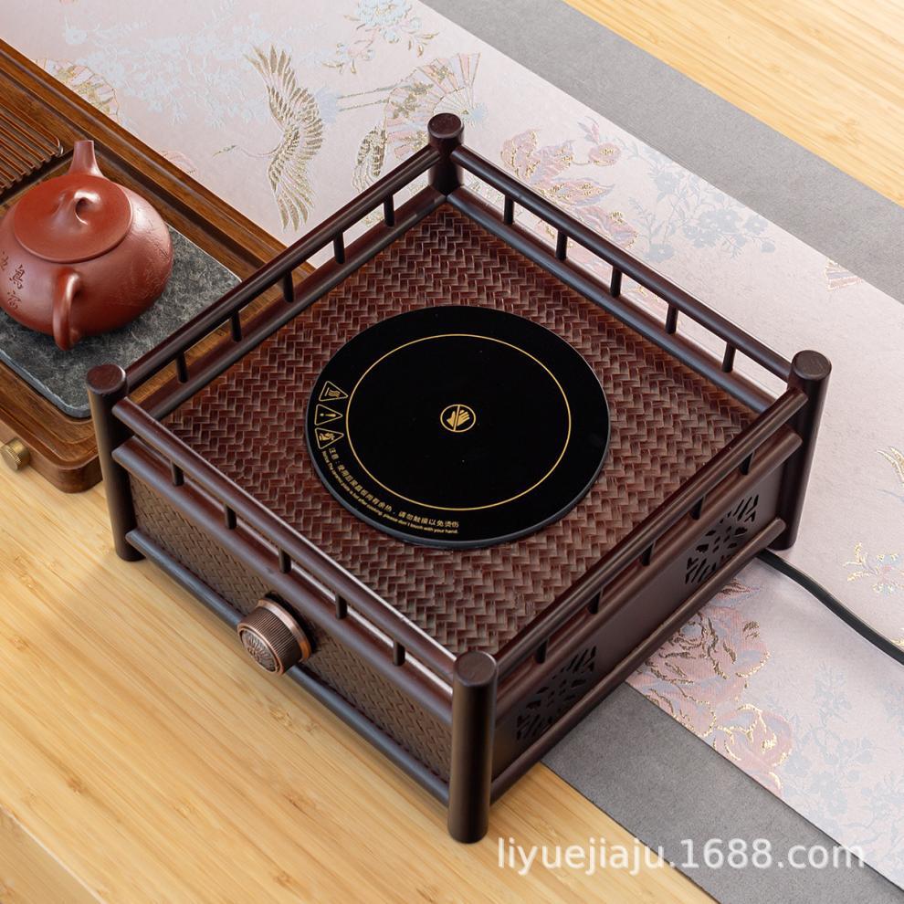 Bếp điện gốm sứ vuông bằng tre óc chó nhỏ mini bếp điện gốm sứ hấp ấm trà cao cấp retro bếp điện trà