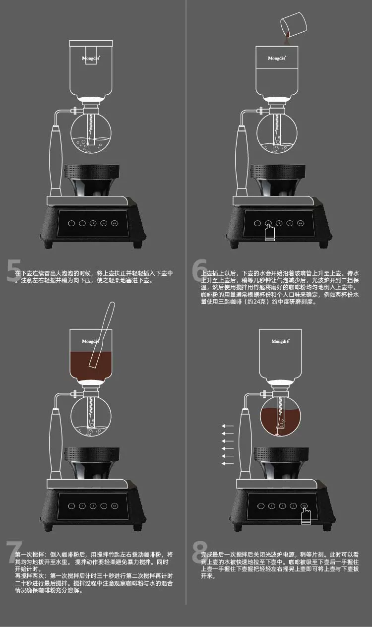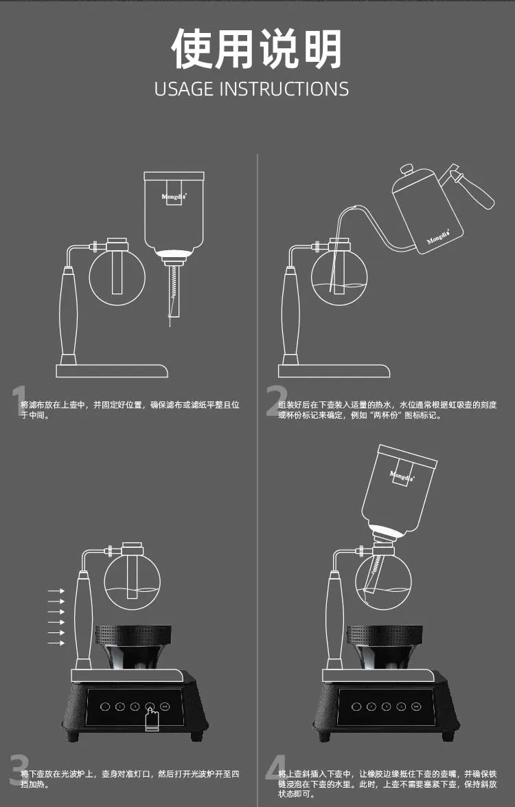 Bếp điện siphon Mongdio, bếp điện sóng nhẹ, ấm pha cà phê siphon, bếp điện làm nóng, bếp đèn đỏ