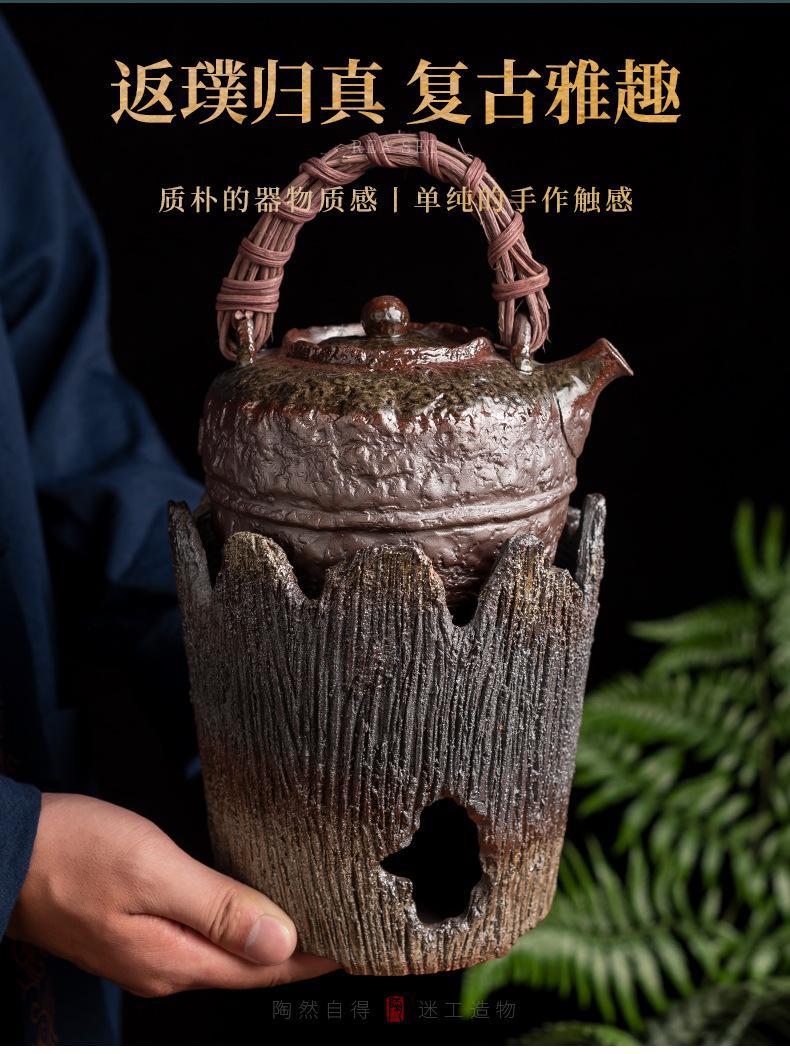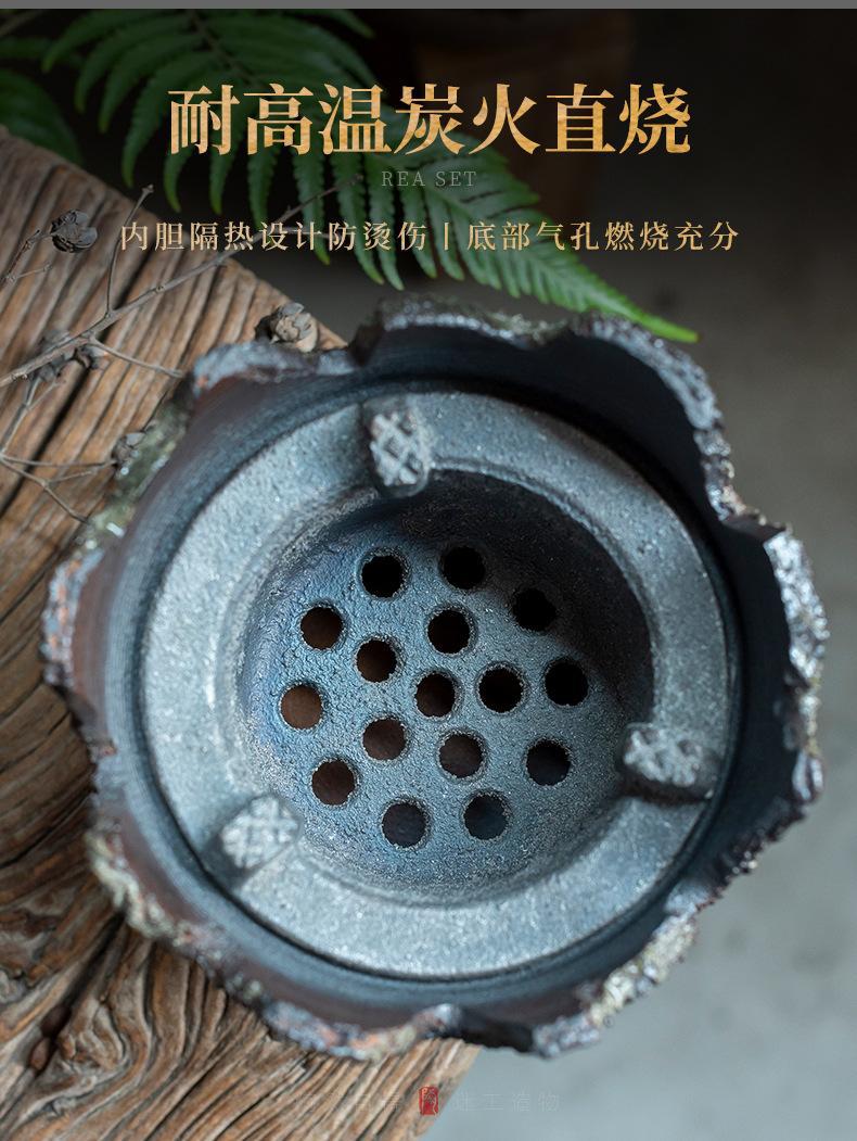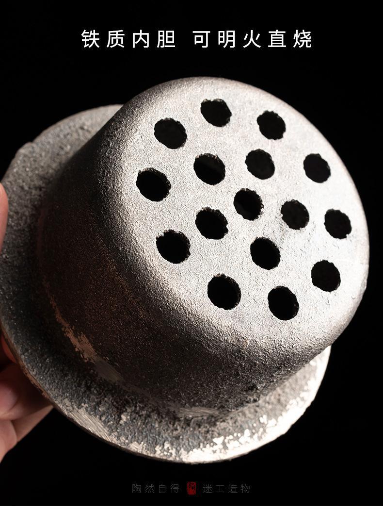 Bếp than gốm thô, bếp pha trà, nồi sắc bằng gang bên trong, nồi cầm xà, lò sưởi than cồn ngoài trời