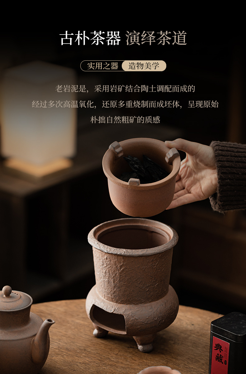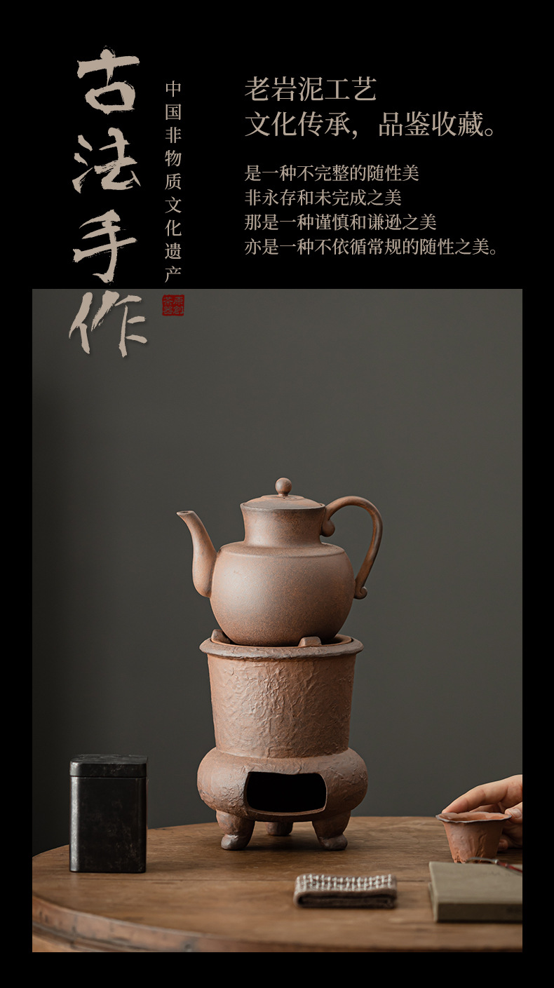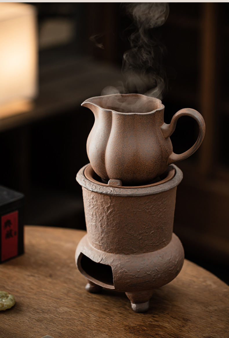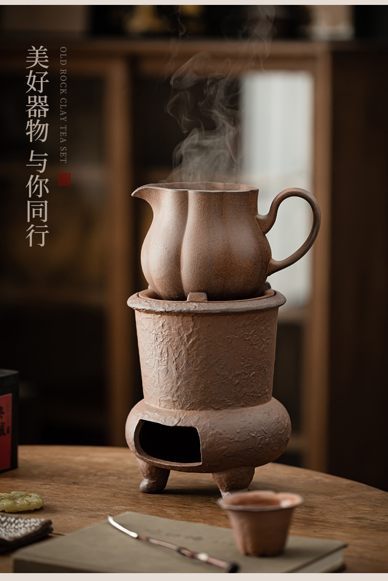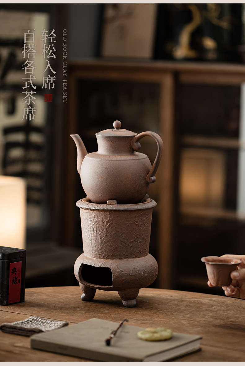 Bếp trà bùn đá cũ, bếp pha trà, ấm trà bằng đá cổ điển, ấm trà, đế sưởi nến, bộ ấm trà gia đình