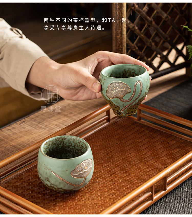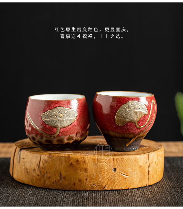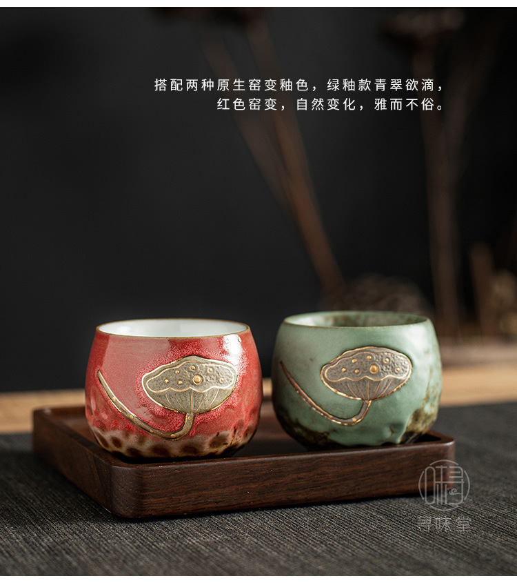 Biết cốc cặp đôi hoa sen | cốc trà Kung Fu gốm sứ cốc chủ nhân gốm thô bộ trà quà cưới cưới