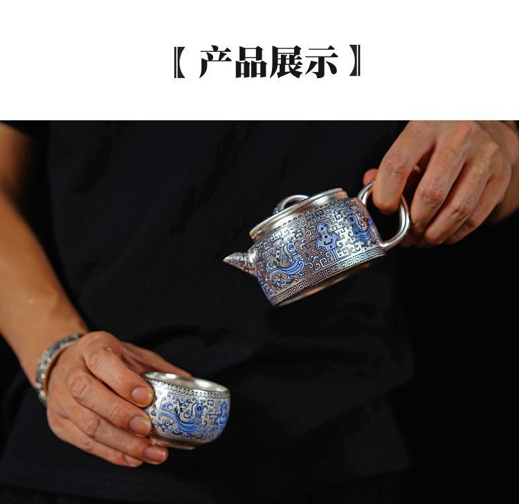 Bình bạc hình rồng sai màu vàng bạc, bình ngói Hán, bộ trà Kung Fu, một bình hai cốc, hộp quà, ấm pha trà mạ bạc cao cấp