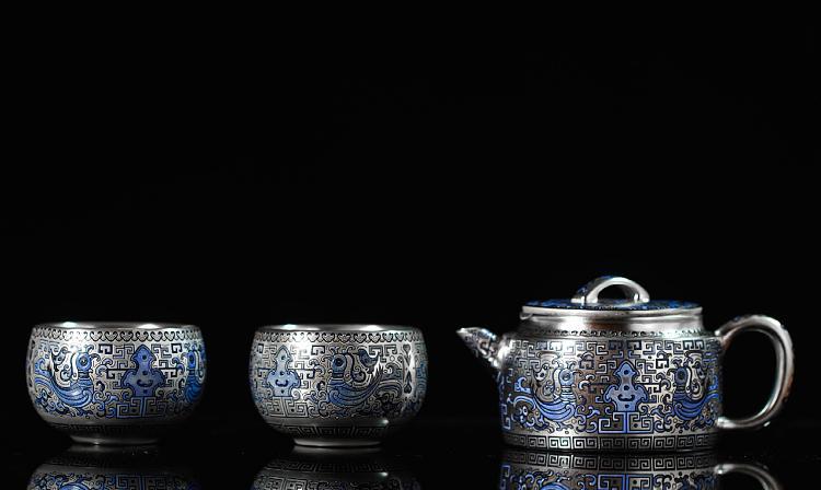 - Bình bạc hình rồng sai màu vàng bạc, bình ngói Hán, bộ trà Kung Fu, một bình hai cốc, hộp quà, ấm pha trà mạ bạc cao cấp